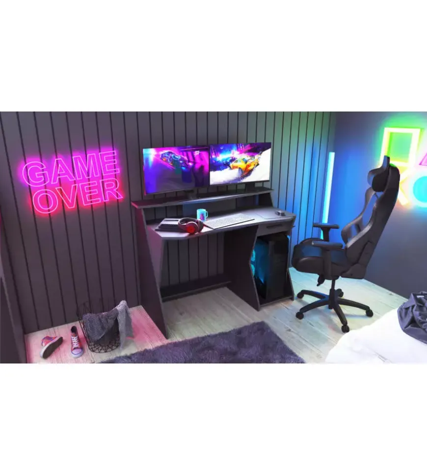 Scrivania in mdf effetto quercia con tre cassetti bianchi, 72x48x120 cm