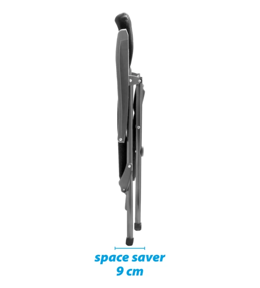 Sedia pieghevole salvaspazio in alluminio con schienale fisso e struttura ad U. Schienale basso. Rivestimento in confortevole tessuto 3D.