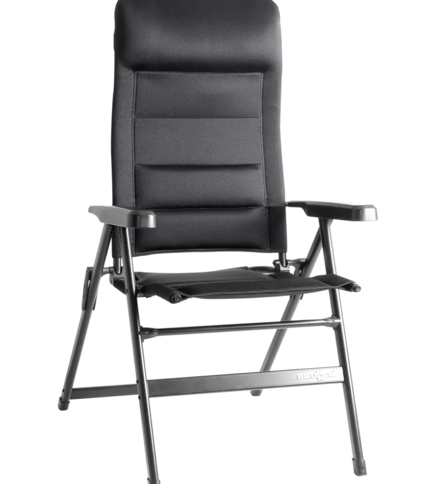 Moderna sedia pieghevole a 4 gambe con schienale reclinabile a 7 posizioni.Caratteristiche: Struttura in profilo di alluminio ad alta portata Telo portante in tessuto 3D imbottito e traspirante Schienale ergonomico e reclinabile a 7 posizioni Schienale con poggiatesta imbottito integrato Braccioli in resistente materiale plastico Snodo centrale in acciaio Possibilità di collegare un poggiagambe Compatta e comoda da trasportare quando ripiegata