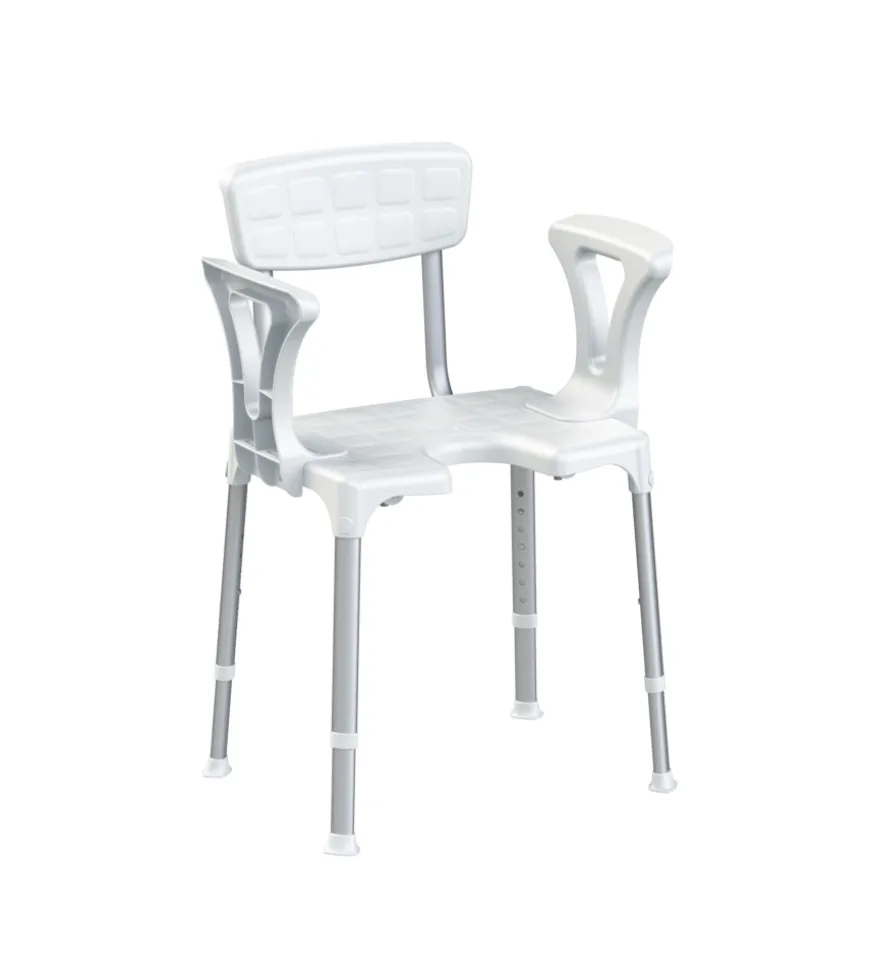- Dotata di gambe telescopiche in alluminio e braccioli con fori;
