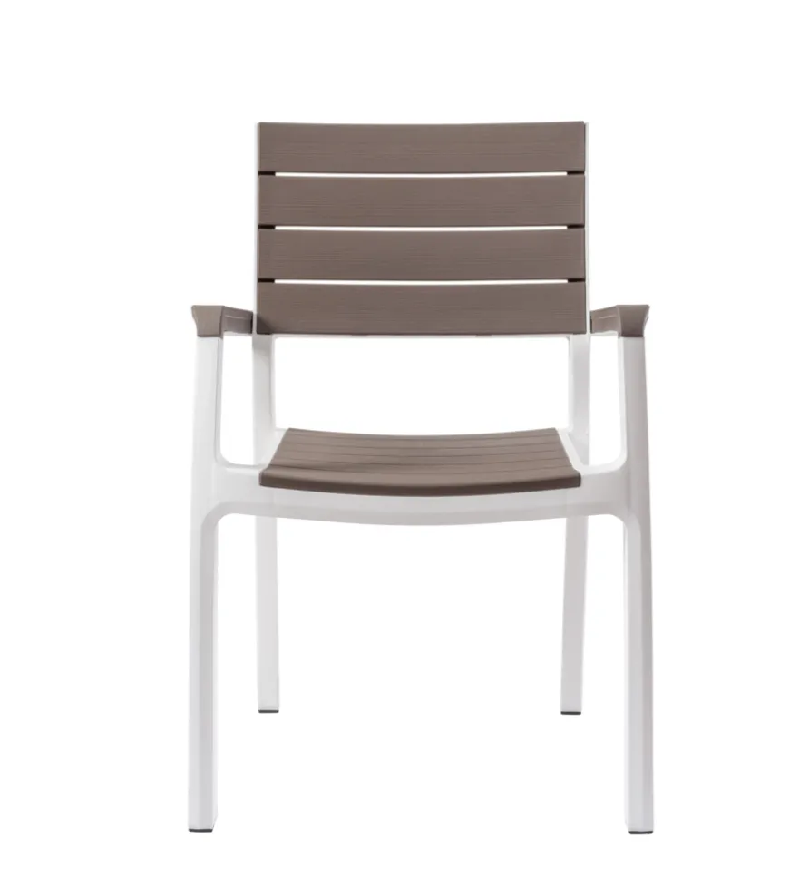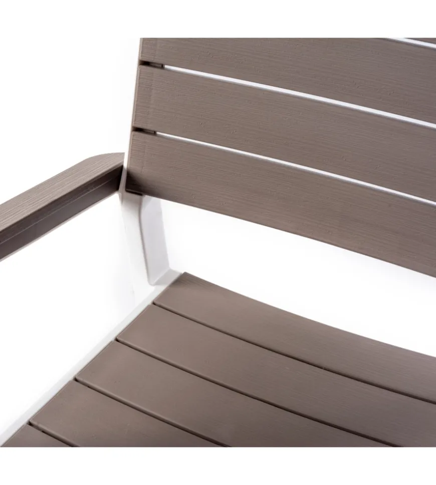 La struttura di questa sedia da giardino รจ realizzata in polipropilene con una rifinitura che richiama l’effetto del legno, pensata ed ideata per rimanere all’esterno grazie alla sua resistenza agli agenti atmosferici e ai raggi solari.