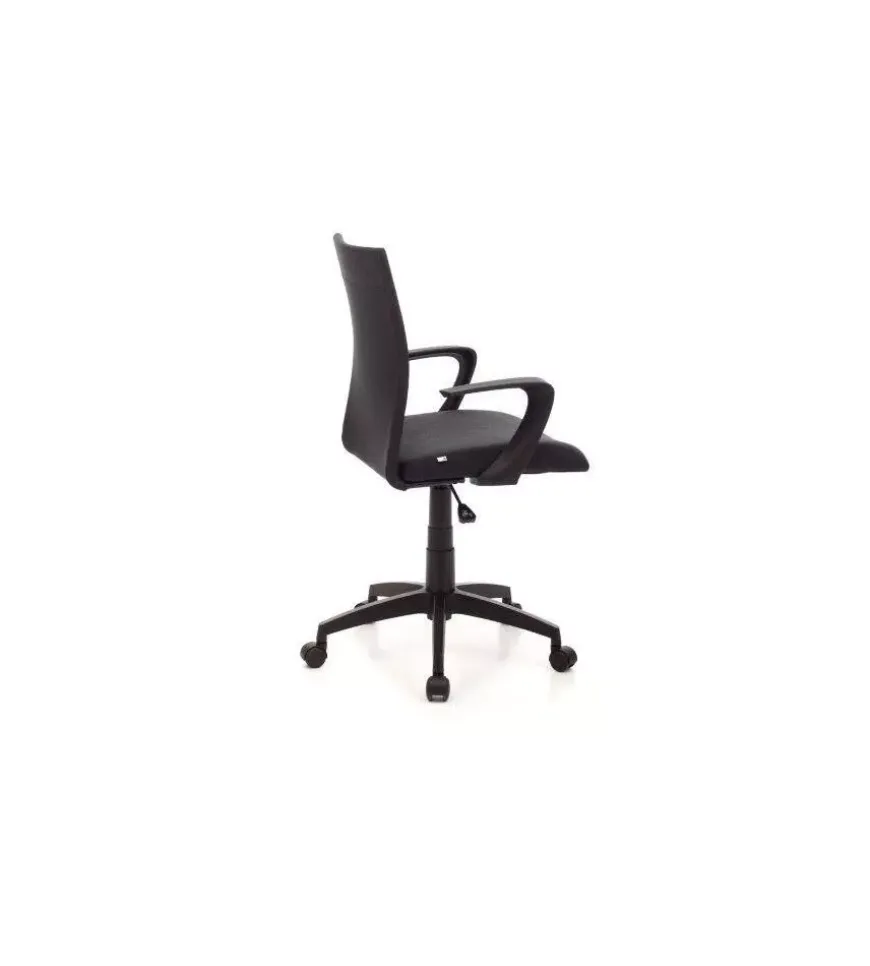 Poltrona per ufficio “Milano” in tessuto nero, con pratici braccioli e meccanismo di alzata a gas.