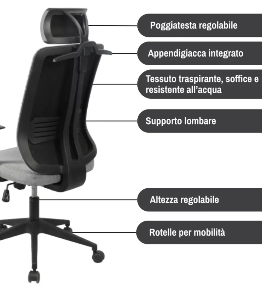 - Sedia da ufficio ergonomica, dal design moderno e funzionale