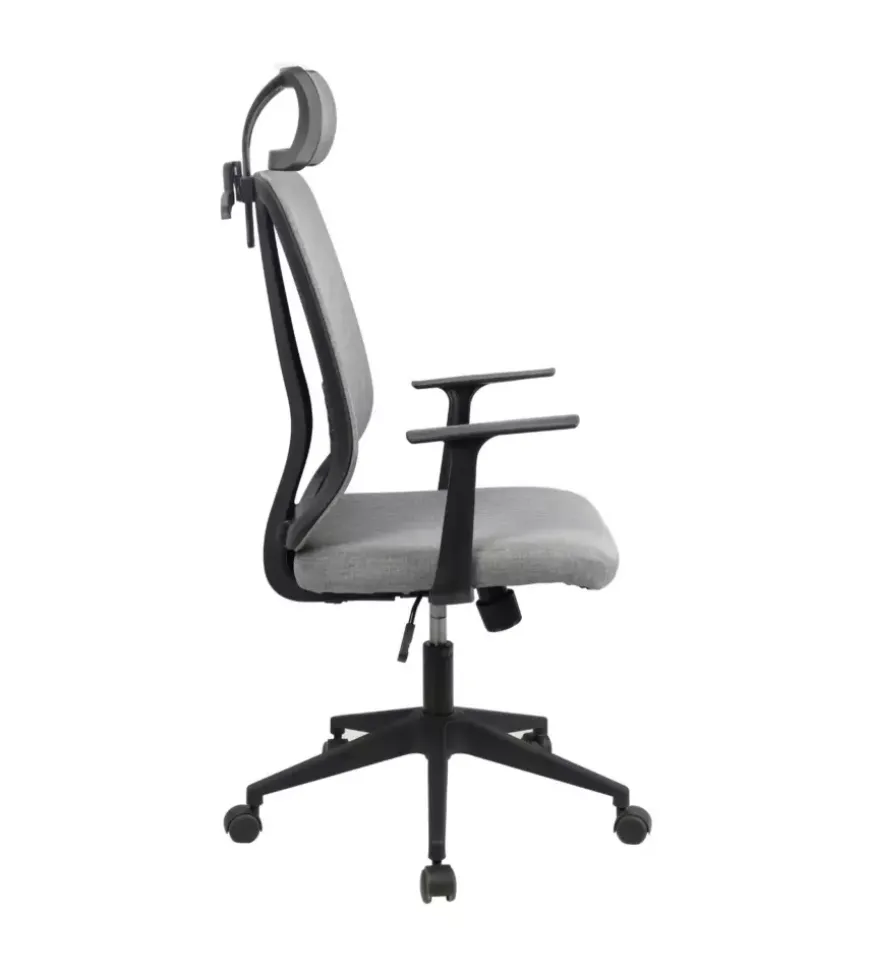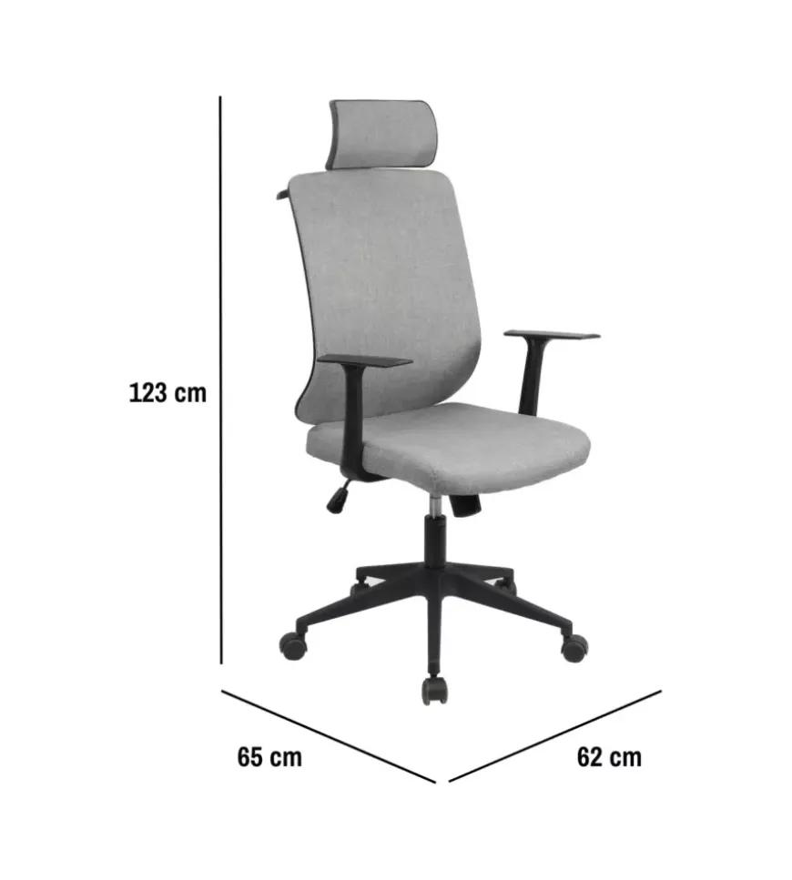 - Colore grigio chiaro per schienale e seduta, con dettagli neri su braccioli, base e ruote
