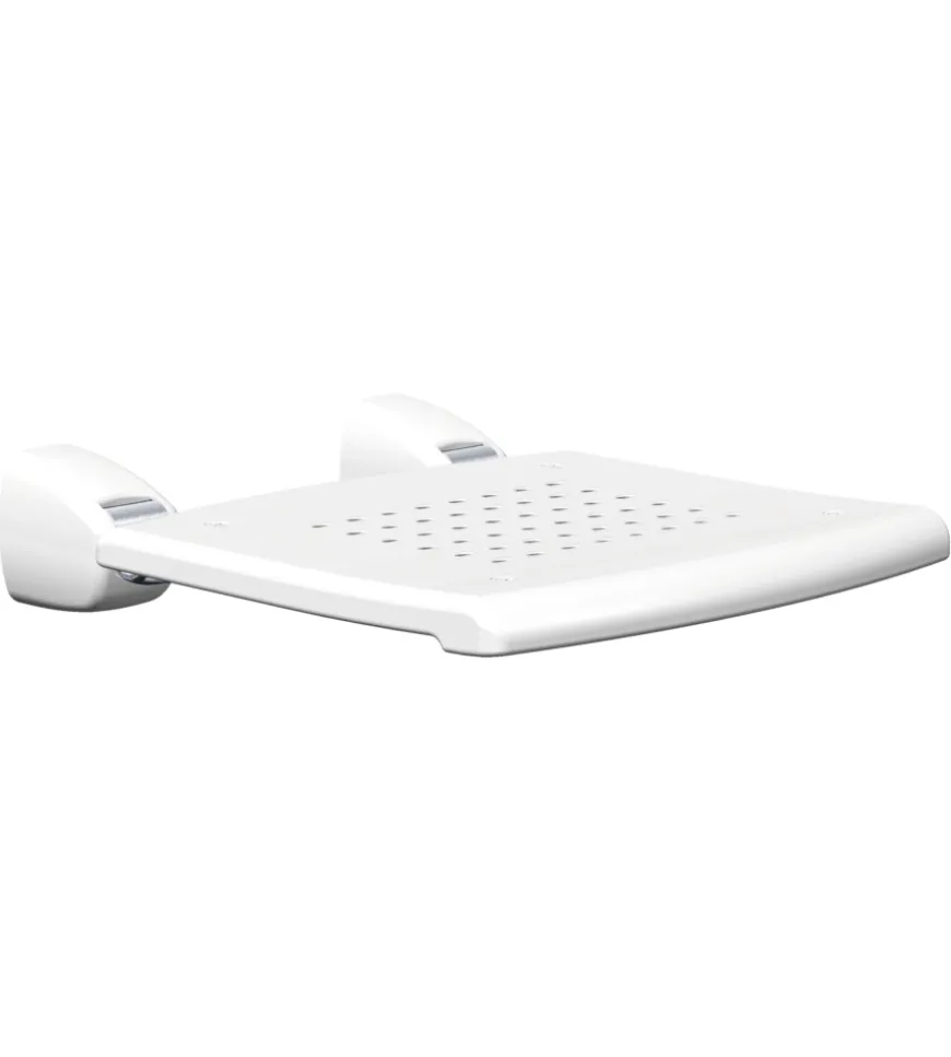 - Sedile bianco ergonomico in tecnopolimeri con finitura antiscivolo ribaltabile verso la parete;