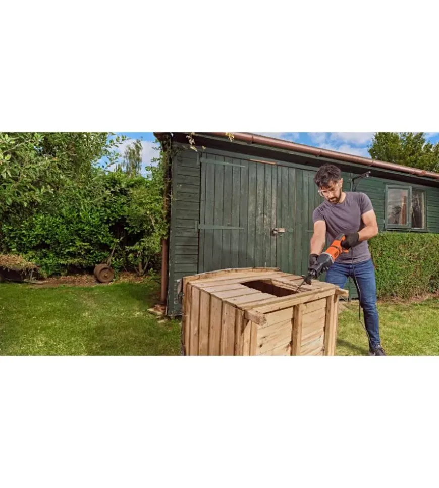 Il peso di soli 2,5 kg la rende facile da manovrare in qualsiasi situazione. Nella confezione sono inclusi morsetti blocca-ramo e due lame (per legno e metallo).