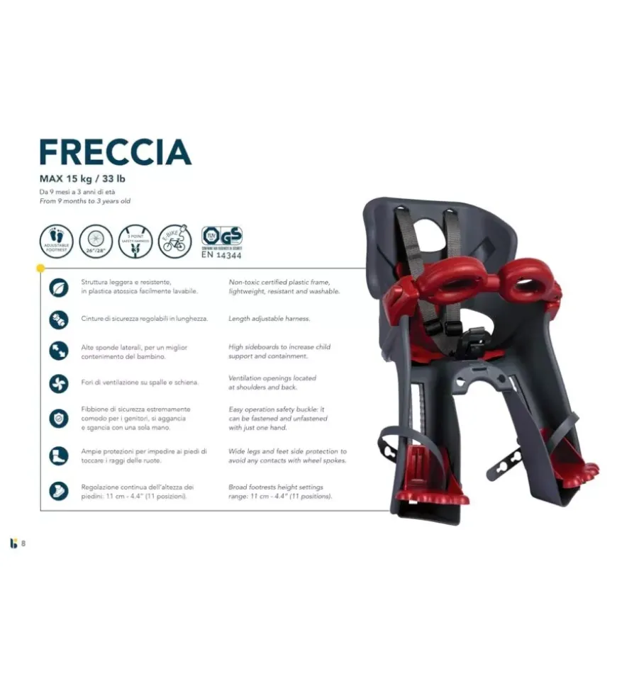 - Compatibile con biciclette con ruote di raggio 26” – 28”.