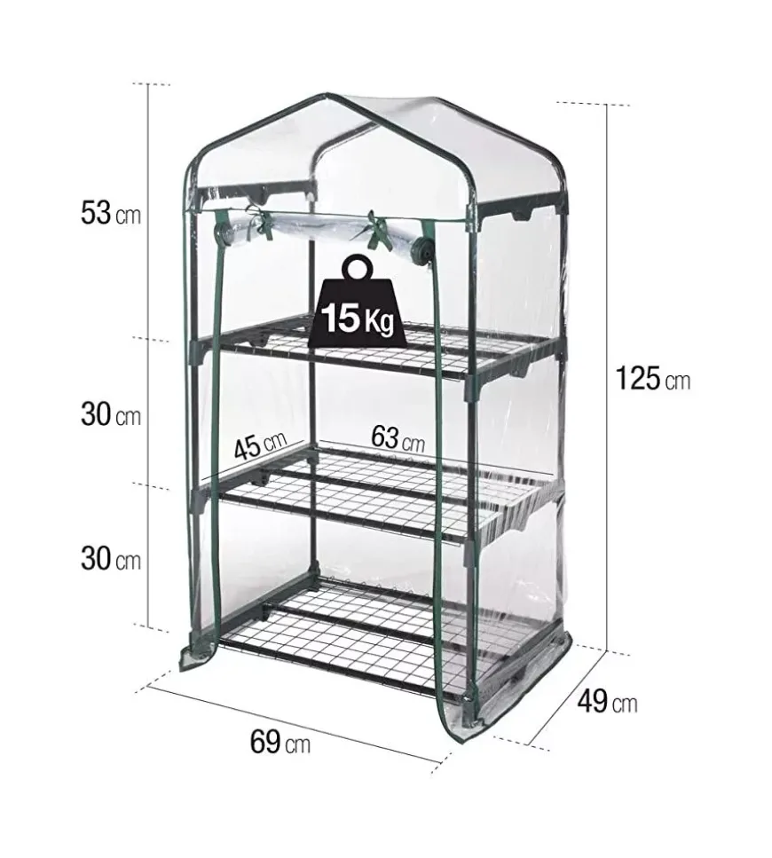 La serra con 3 ripiani 69x49x125 cm è la soluzione ideale per proteggere ortaggi, fiori e piante durante la stagione invernale. La struttura in acciaio verniciato a polveri epossidiche garantisce resistenza e lunga durata, mentre il telo trasparente in PVC permette il passaggio della luce e può essere facilmente arrotolato verso l’alto per un accesso rapido alle piante. L’apertura frontale con cerniera semplifica la manutenzione e, nei mesi estivi, la serra può essere utilizzata senza telo come porta fiori da esterno. I ripiani da 63×45 cm con altezza regolabile tra 30 e 53 cm offrono spazio ottimale per coltivazioni compatte e pratiche, unendo funzionalità e versatilità in ogni stagione.