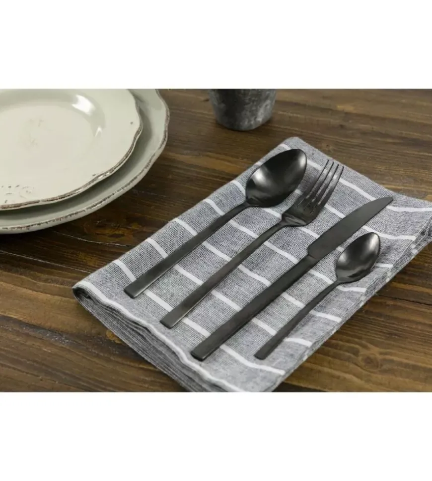 Infine, i cucchiaini misurano 3 cm di larghezza, 2 cm di profondità e 14,5 cm di altezza, con un peso di 18 grammi e uno spessore di 2,5 mm. Il colore nero opaco conferisce a questo set di posate un aspetto moderno e sofisticato, perfetto per cene eleganti o per un uso quotidiano con stile. Queste posate sono anche lavabili in lavastoviglie, garantendo una manutenzione facile e pratica.