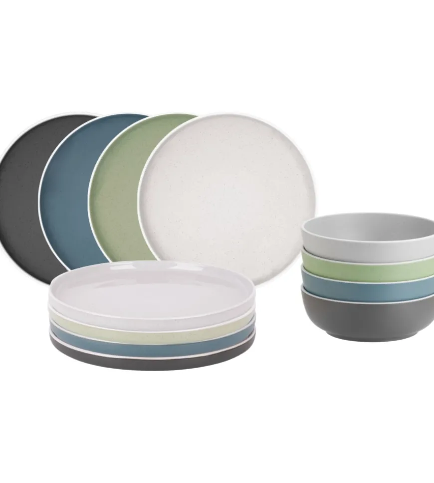 Set di stoviglie in melamina di alta qualità (12 pezzi). Tutti i pezzi sono dotati di sistema antislip.
