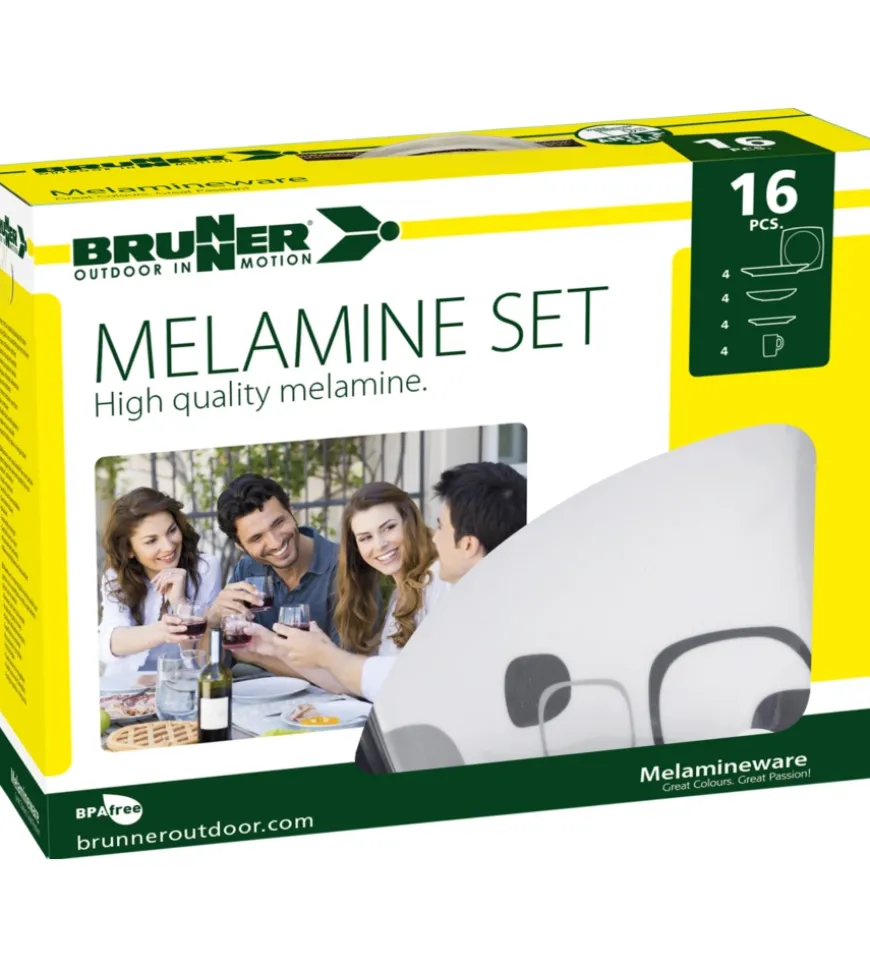 Set di stoviglie in melamina di alta qualità (16 pezzi) con design sempre di moda.