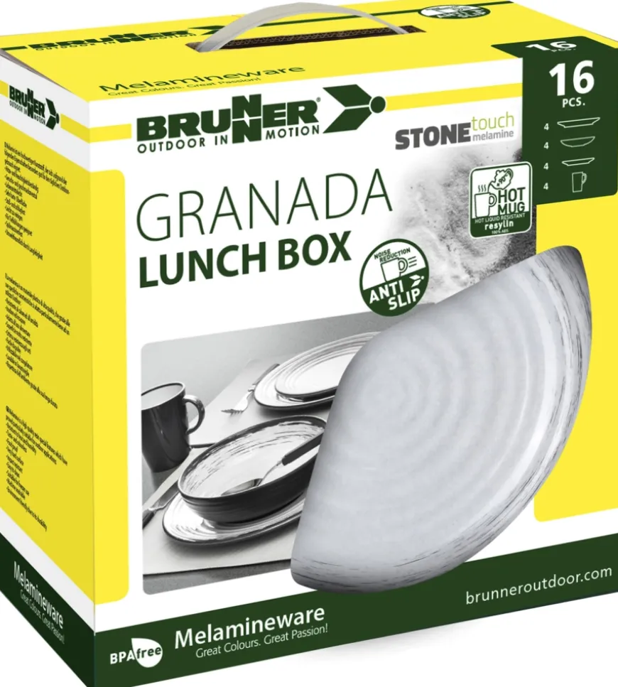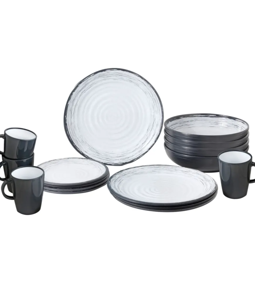 Set di stoviglie in melamina di alta qualità (16 pezzi). Tutti i pezzi sono dotati di sistema antiscivolo.