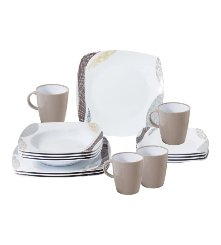et di stoviglie in melamina di alta qualità (16 pezzi) con design sempre di moda.