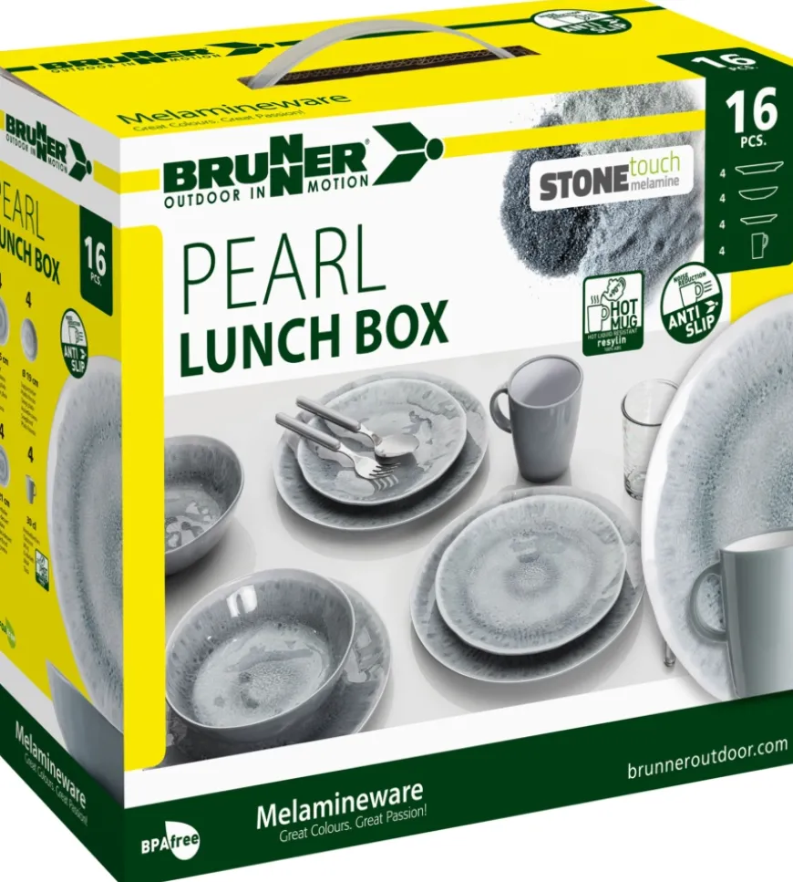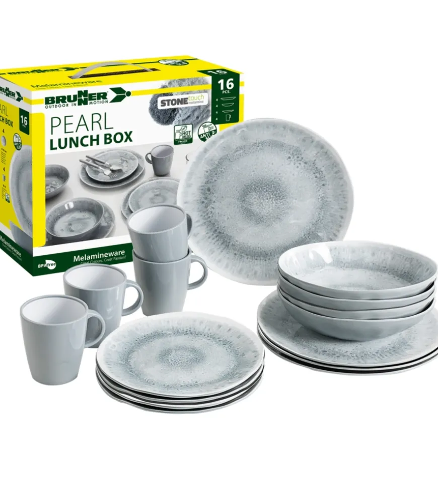 Set di stoviglie in melamina di alta qualità (16 pezzi). Tutti i pezzi sono dotati di sistema antiscivolo.