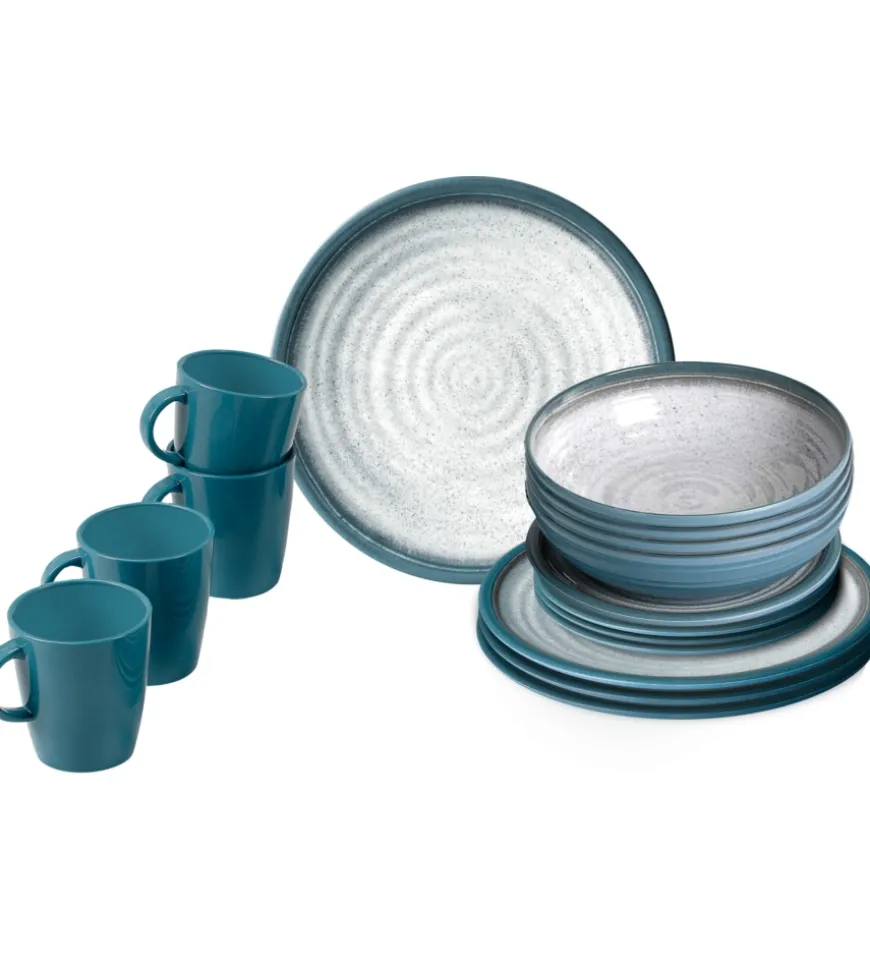 Set di stoviglie in melamina di alta qualità (16 pezzi). Tutti i pezzi sono dotati di sistema antiscivolo.