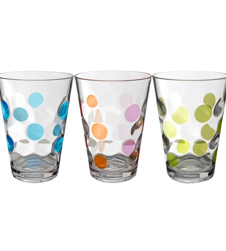 Bicchieri moderni e di tendenza prodotti in SAN alimentare di alta qualità. Impilabili. Disponibili in 3 varianti di colore.