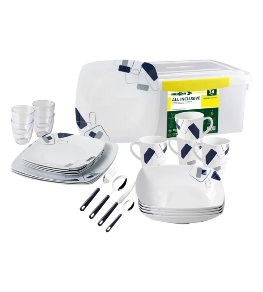 Set di stoviglie (36 pezzi) con contenitore di trasporto.
