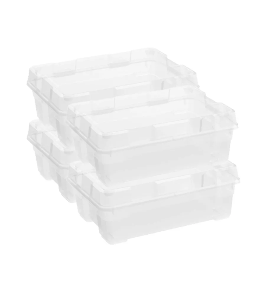 - Impilabili e trasparenti per una facile visualizzazione del contenuto