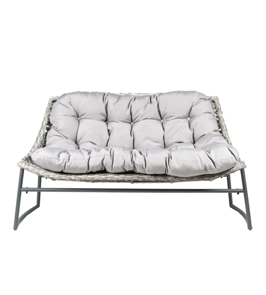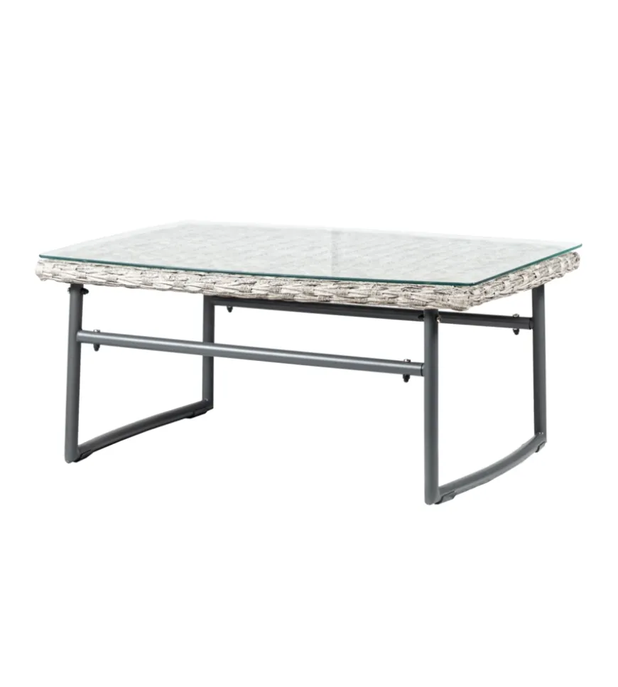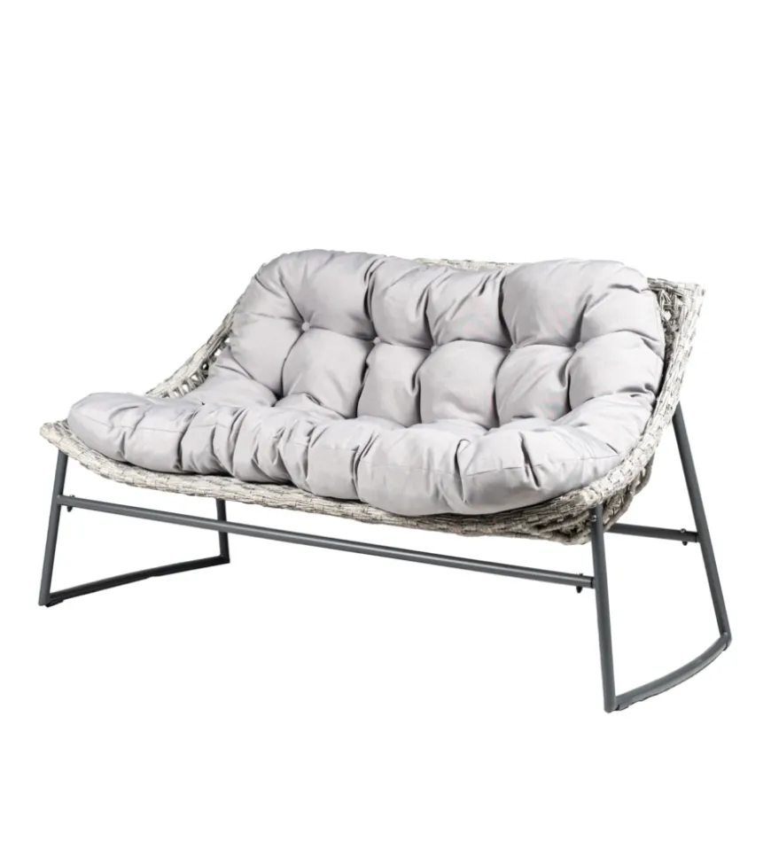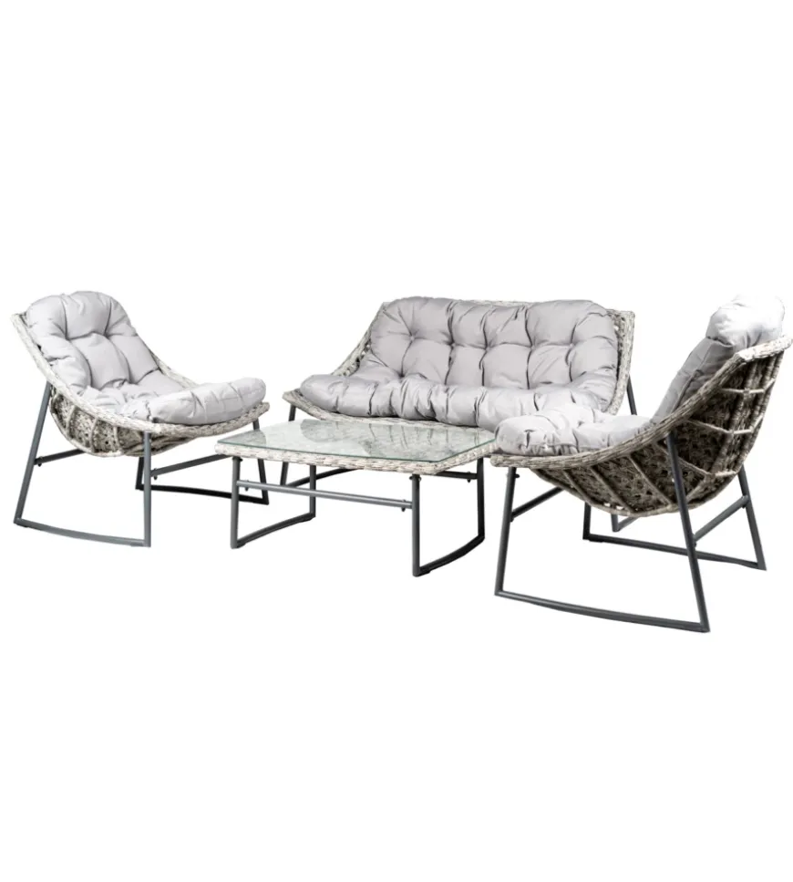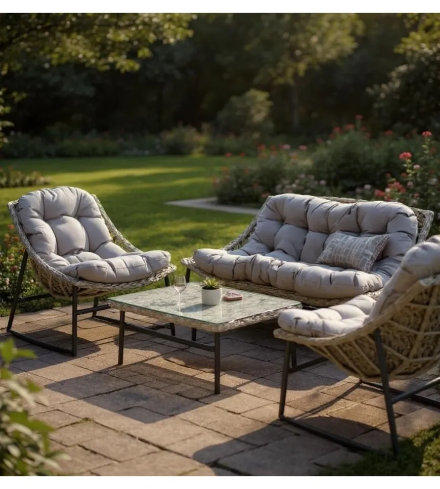 Il set da esterno è realizzato in pe rattan, un materiale robusto e durevole che garantisce una resistenza agli agenti atmosferici.