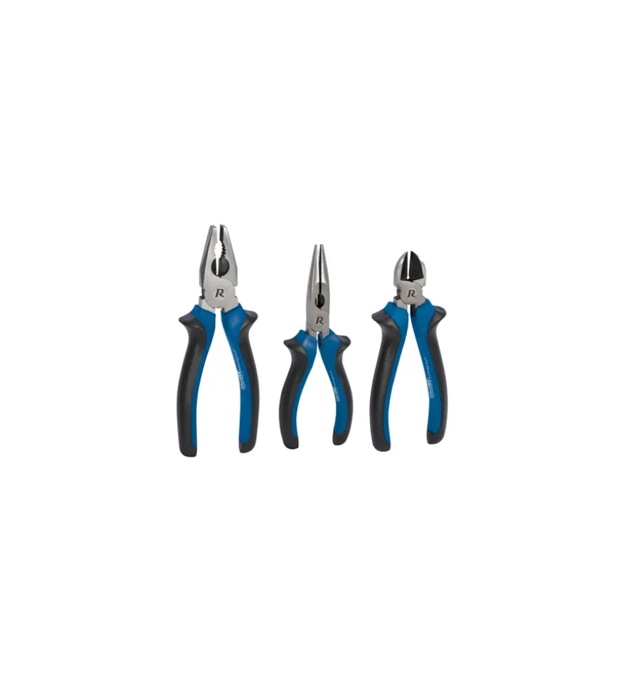PR3PKIT3 – Con un’impugnatura ergonomica antiscivolo questo kit di 3 pinze in acciaio al carbonio C45 sono molto forti e resistenti. 1 pinza universale 180mm, 1 pinza a becchi mezzitondi lunghi dritti 160mm e 1 pinza da taglio da 160mm.