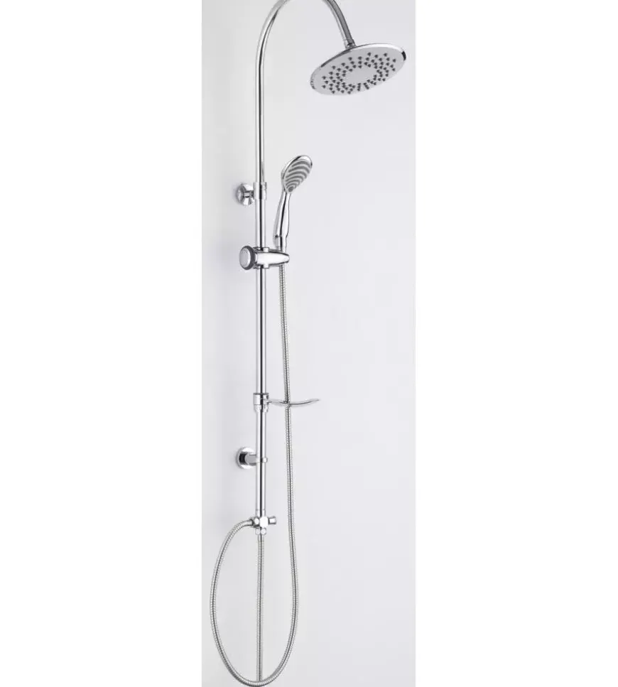 Kit saliscendi, doccia, soffione, flessibile a doppia aggraffatura. Lunghezza: 1.5 metri. Con barra e portasapone.
