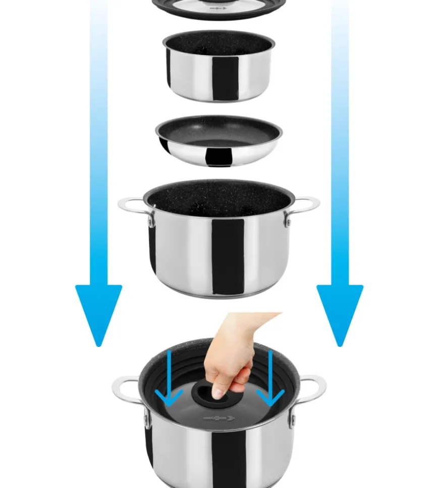 Set pentole in acciaio inossidabile (5+1 pezzi) con rivestimento antiaderente e coperchio Vacublock