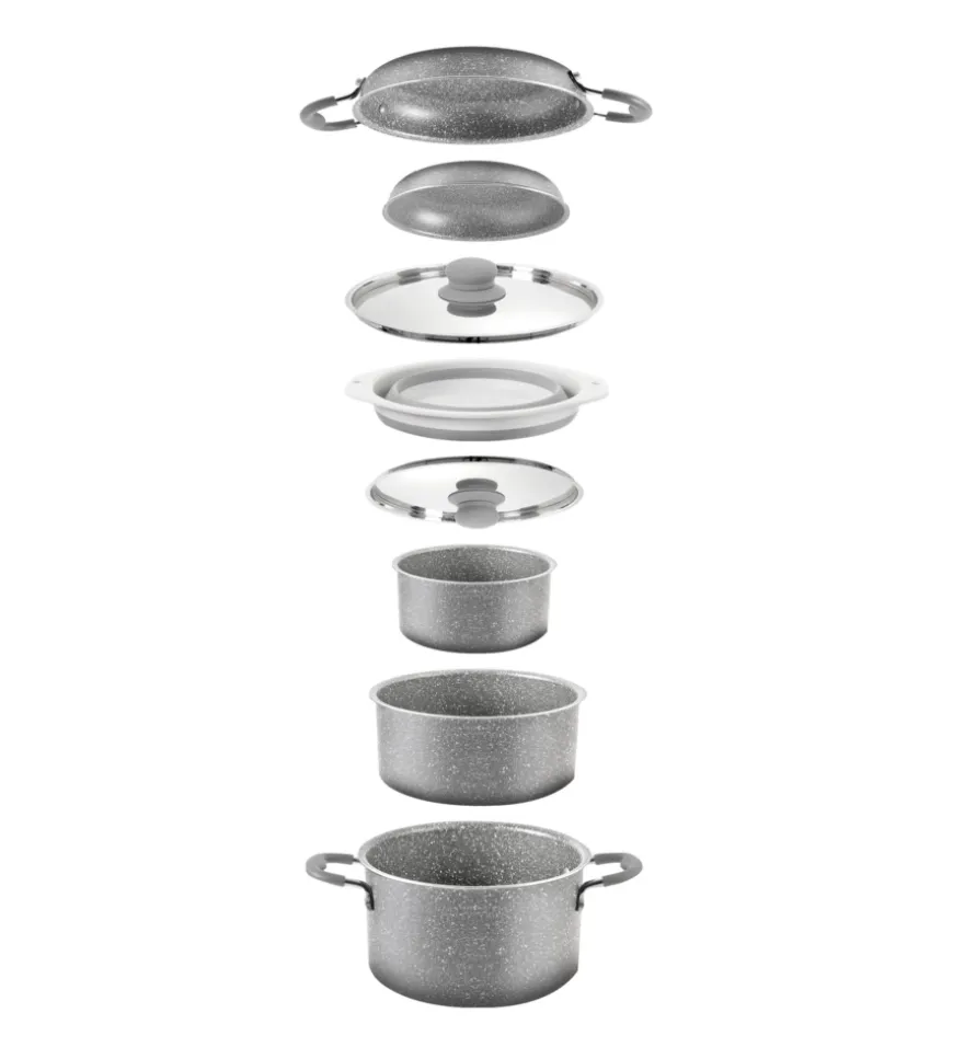 Set pentole in alluminio (9+1 pezzi) con rivestimento Stone Rock