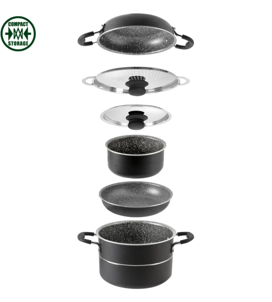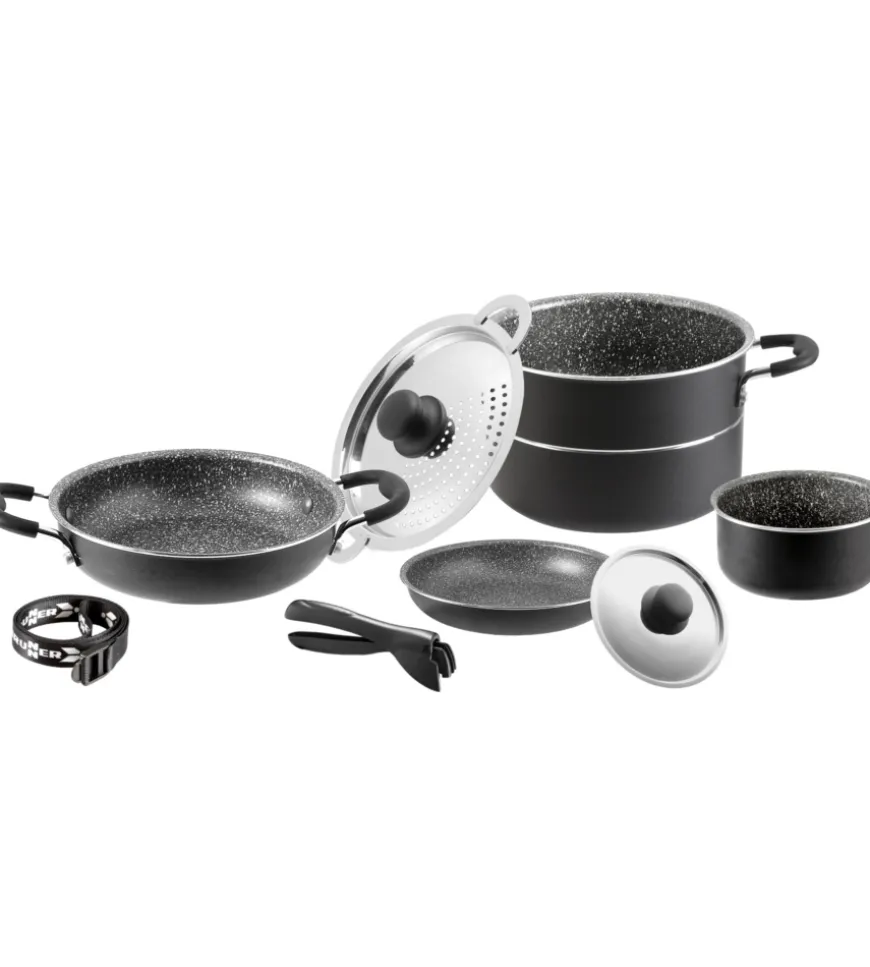 Set pentole in alluminio (7+1 pezzi) con rivestimento Stone Rock