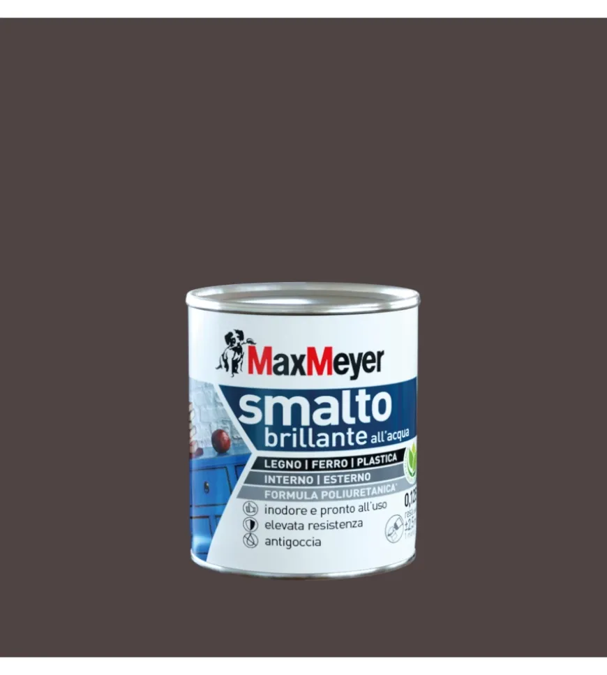 Smalto all'acqua acril-poliuretanico max meyer "brillante" colore marrone, 125 ml