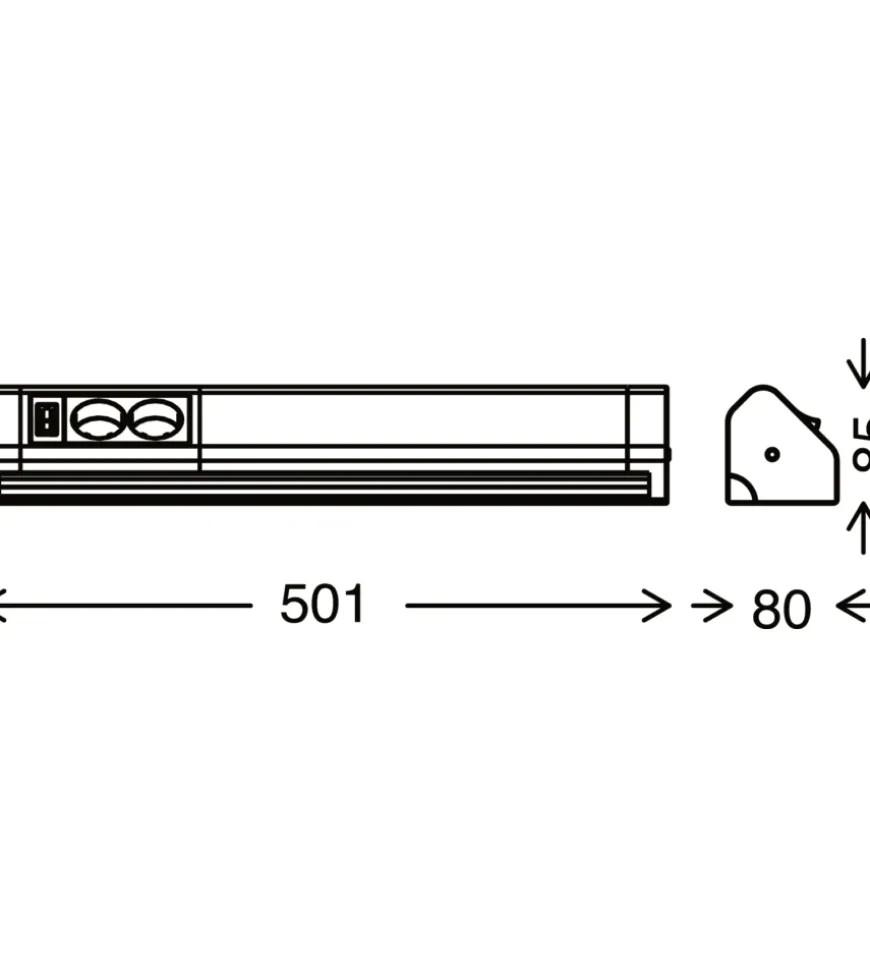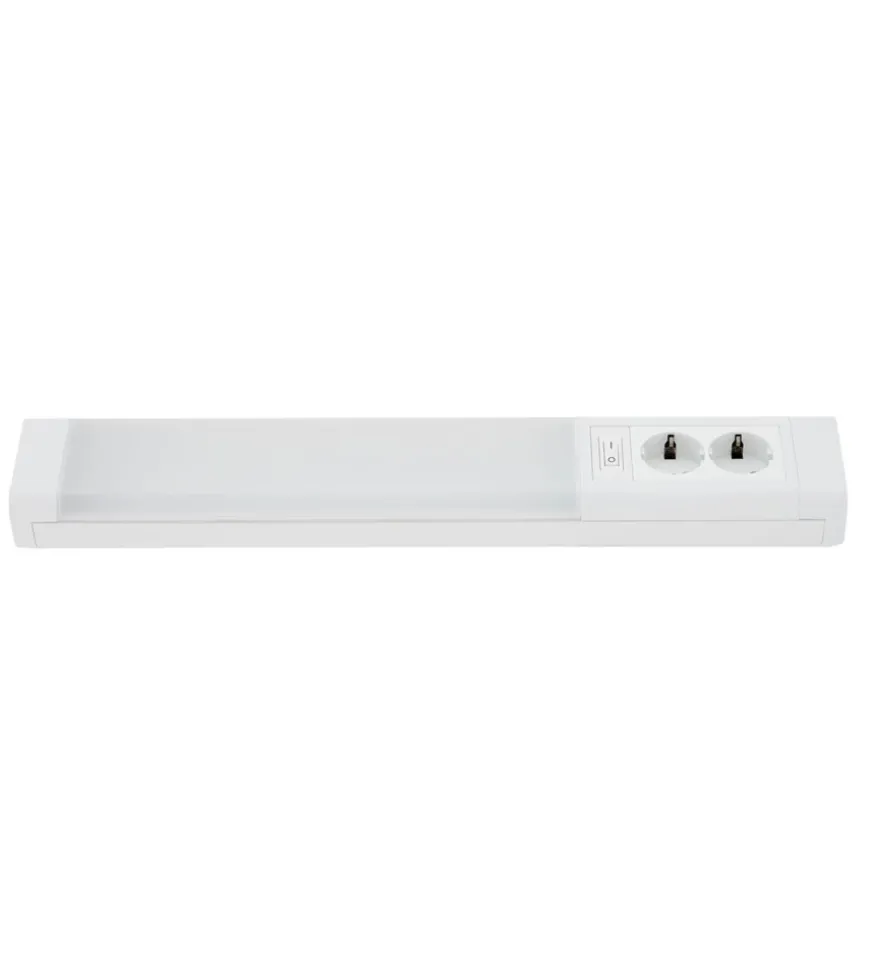 Luce LED sottopensile 0W 850lm 4.000K durata 25.000 ore. Lampada in plastica bianca con interruttore ON/OFF, comprensivo di due prese, con connessione diretta IP20 501x80x85mm (LxPxH)