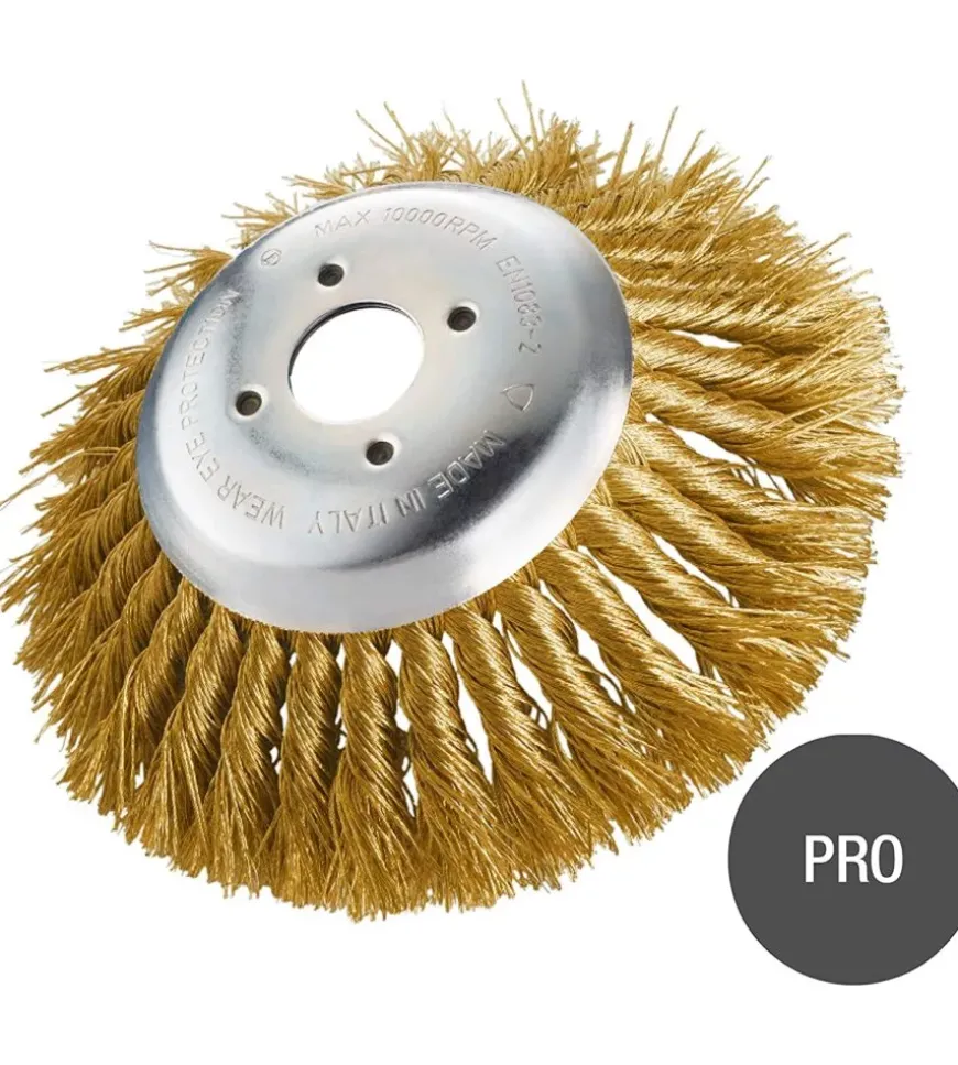 La spazzola con mazzetti ritorti in acciaio SIT CZ170 LIZ per decespugliatore è l’accessorio ideale per rimuovere facilmente e rapidamente erbacce, arbusti, muschio e vegetazione incontrollata da pavimentazioni esterne e marciapiedi. Oltre ad essere estremamente efficace è anche ecologica in quanto alternativa a diserbanti chimici. Si consiglia una potenza del decespugliatore pari o superiore a 1,6 cavalli e di utilizzare sempre indumenti protettivi durante l’utilizzo. Viene fornito il kit di adattatori in acciaio fino a foro 20mm – 3/4″ per il montaggio sulla maggior parte dei modelli di decespugliatore in commercio.
