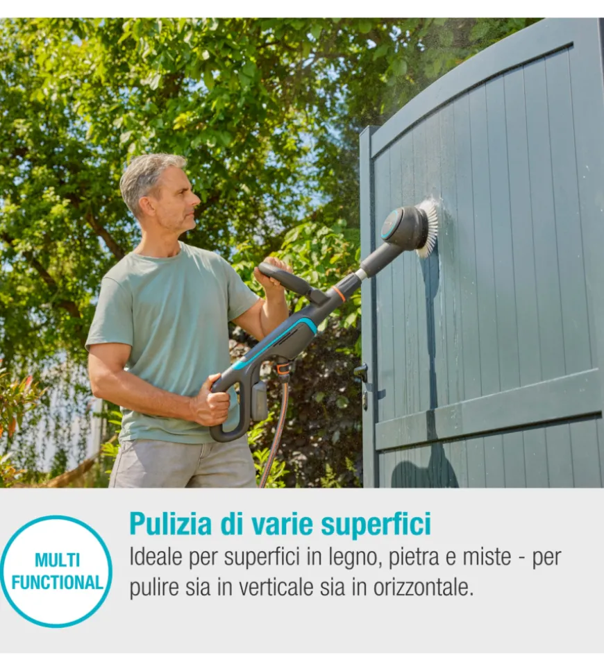 - Pulizia completa in un solo passaggio grazie all’azione combinata di spazzola e spruzzo d’acqua