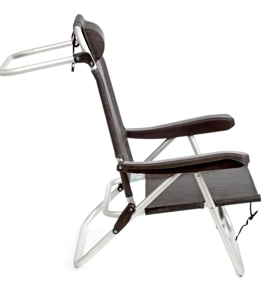 Sedia da spiaggia in alluminio con schienale reclinabile a 4 posizioni e cuscino per un maggior comfort. Leggera e facile da trasportare. Perfetta per rilassarsi e godersi il sole in piscina o in spiaggia.Caratteristiche: Schienale reclinabile in posizione completamente orizzontale Con gamba di supporto schienale pieghevole Confortevoli braccioli