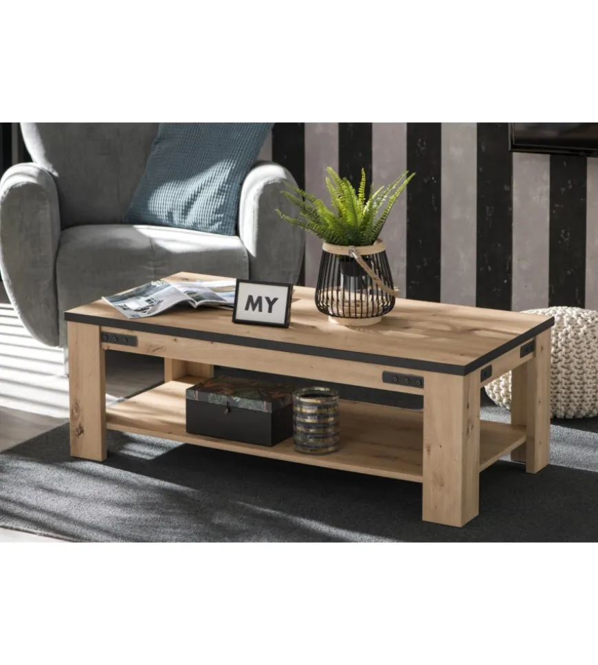 - Design: Stile industriale con rifinitura effetto quercia e dettagli in metallo nero, perfetto per soggiorni moderni o classici
