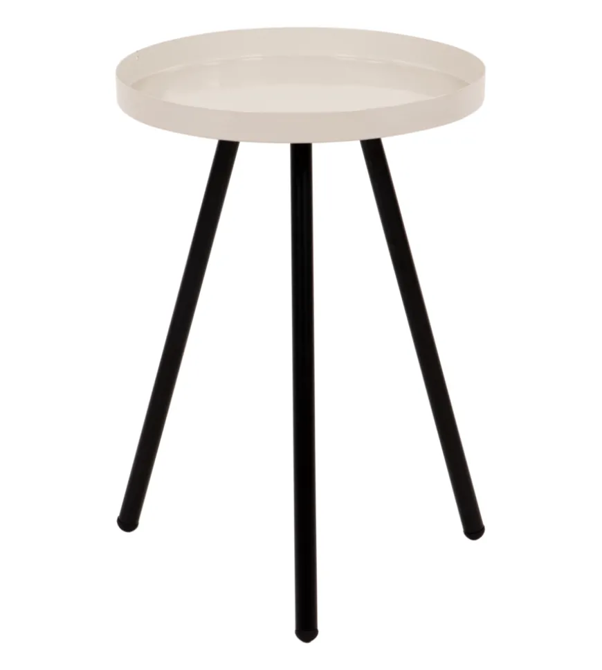 Il tavolino ha una struttura in metallo nero, mentre il top, sempre in metallo, è color crema, perfetto per essere abbinato a qualsiasi arredo.