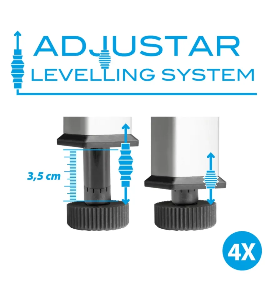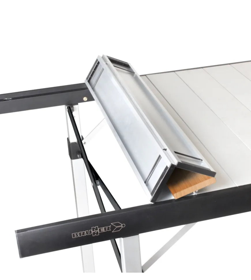 La versione elegante del Titanium Quadra NG. Ripiano in alluminio con listelli terminali in vero legno di bambù e livella a bolla d’aria integrata per il perfetto funzionamento del nuovo sistema di livellamento 90° Adjustar. Con borsa da trasporto.