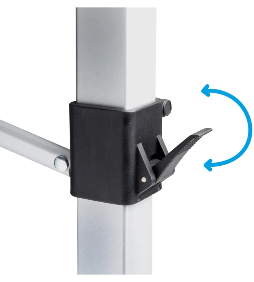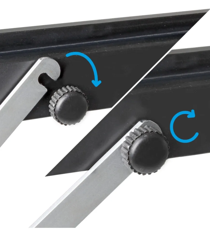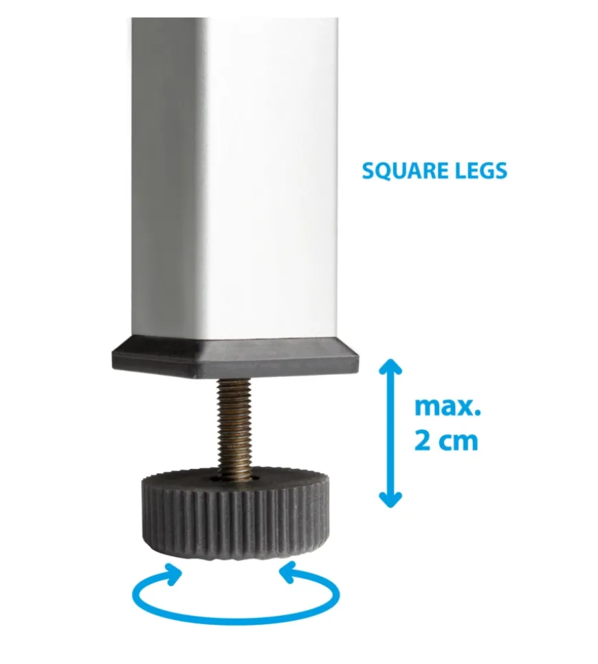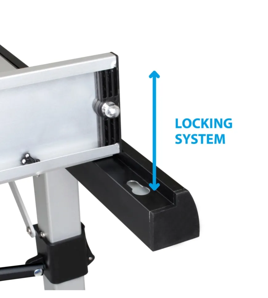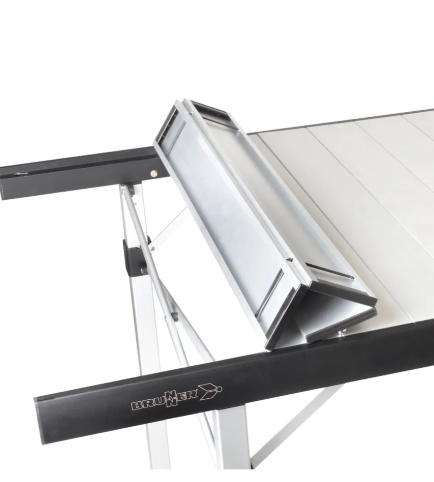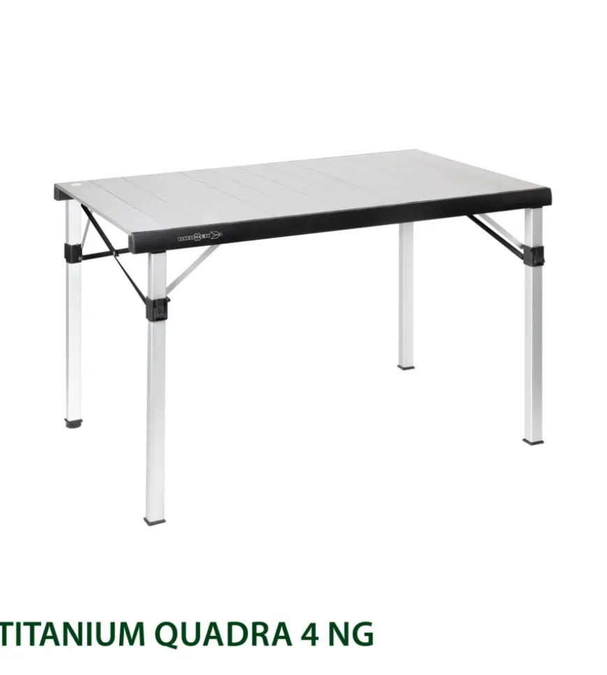 La nuova gamma di tavoli Quadra in alluminio con piano arrotolabile è caratterizzata da un nuovissimo telaio pieghevole, basato sulla classica costruzione del tavolo a 4 gambe verticali. Il piano del tavolo cosiddetto Gapless poiché senza intercapedini, è collegato al telaio del tavolo con uno speciale meccanismo di bloccaggio rapido. A differenza dei classici tavoli pieghevoli con telaio a X, il Quadra offre spazio sufficiente per le gambe su tutti e 4 i lati. Installazione facile e veloce. Design moderno combinato con una funzionalità migliorata. Una borsa custodia per il trasporto.