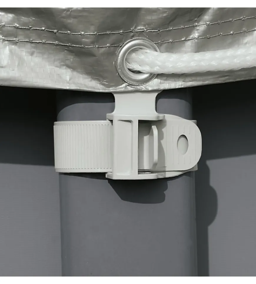 Proteggi la tua piscina in modo semplice ed efficace con il telo copripiscina Deluxe Intex! Ideale per evitare l’accumulo di detriti, foglie e sporcizia quando la piscina non è in uso, questo telo aiuta a mantenere l’acqua pulita e pronta per il prossimo utilizzo. Grazie ai pratici ganci, puoi fissarlo saldamente alla piscina, impedendo che venga sollevato dal vento o da condizioni climatiche avverse. Il telo è dotato di fori di drenaggio che permettono all’acqua piovana di defluire facilmente, evitando accumuli che potrebbero danneggiare il materiale. Realizzato in PVC e polietilene resistente ai raggi UV, è progettato per durare nel tempo anche sotto l’esposizione al sole.