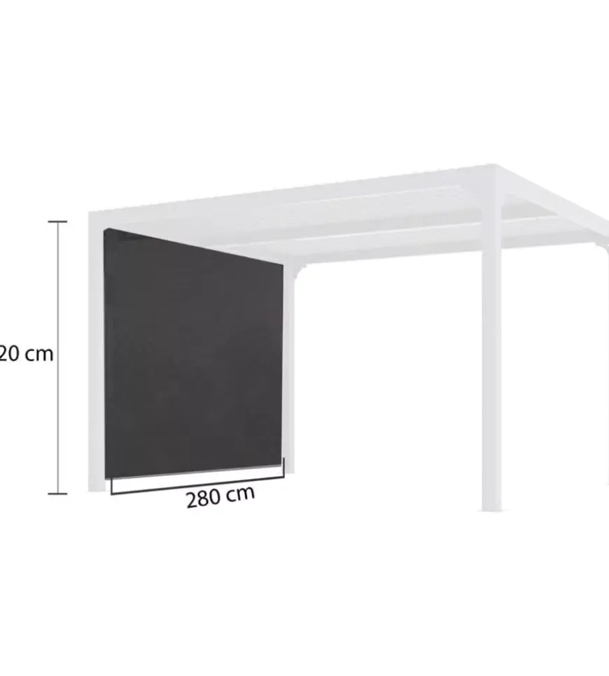 La tenda accessoria include 2 cuscinetti svolgitori laterali, 1 cilindro di supporto e 2 battagliole per discesa verticale. Abbina questa funzionale tenda accessoria con binario alla tua pergola da esterno bioclimatica!