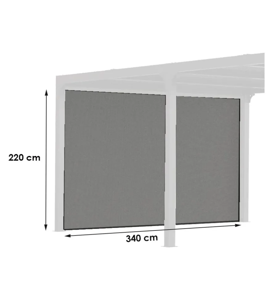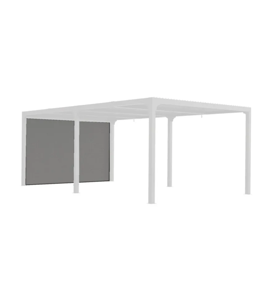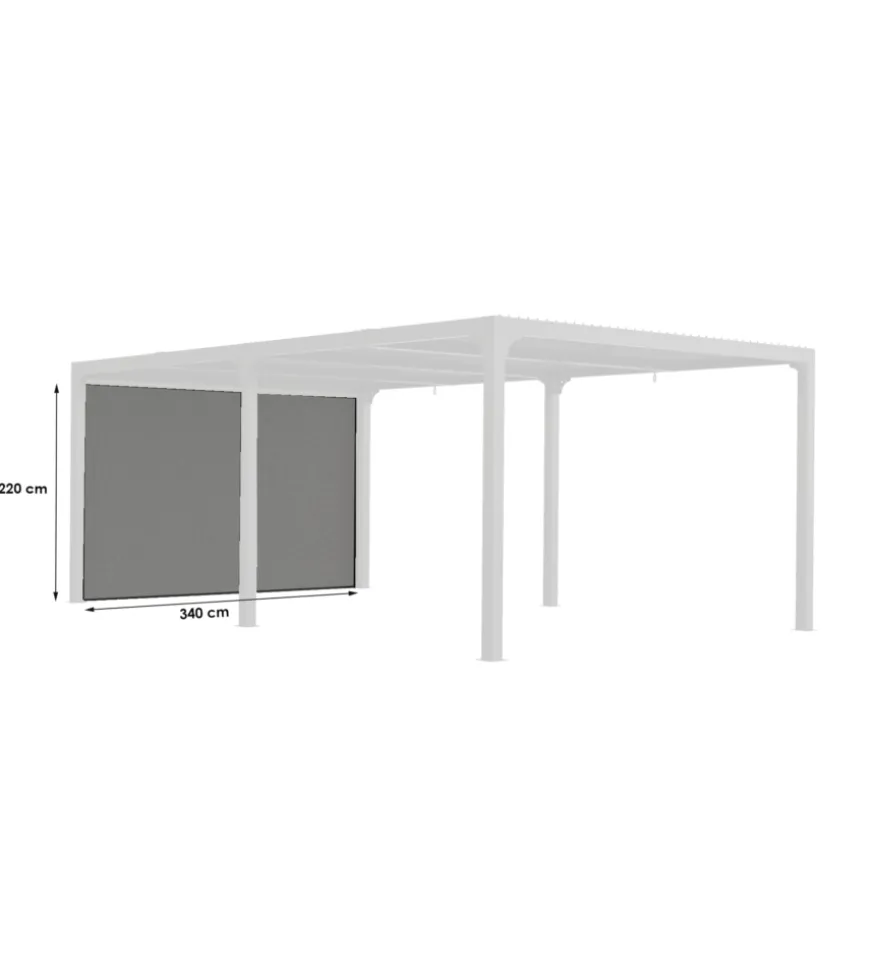 La tenda accessoria include 2 cuscinetti svolgitori laterali, 1 cilindro di supporto e 2 battagliole per discesa verticale. Abbina questa funzionale tenda accessoria con binario alla tua pergola da esterno bioclimatica!