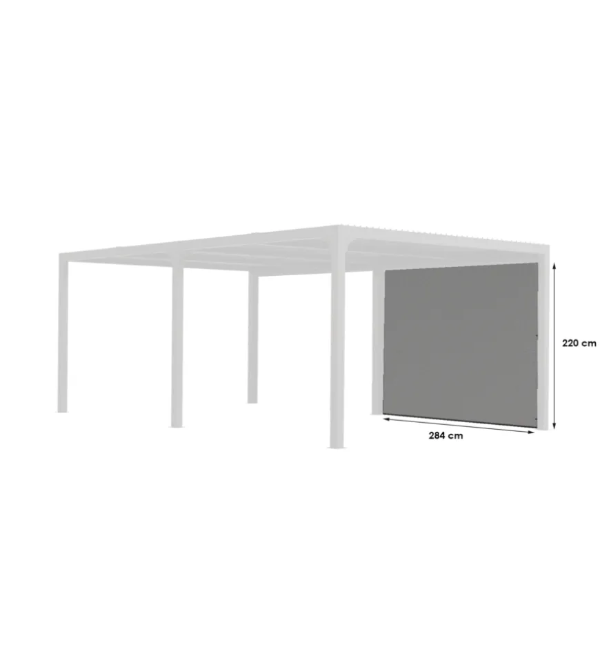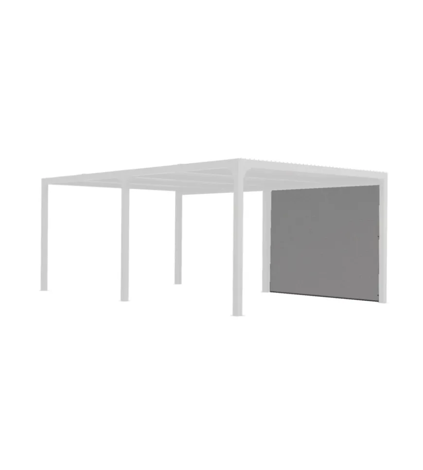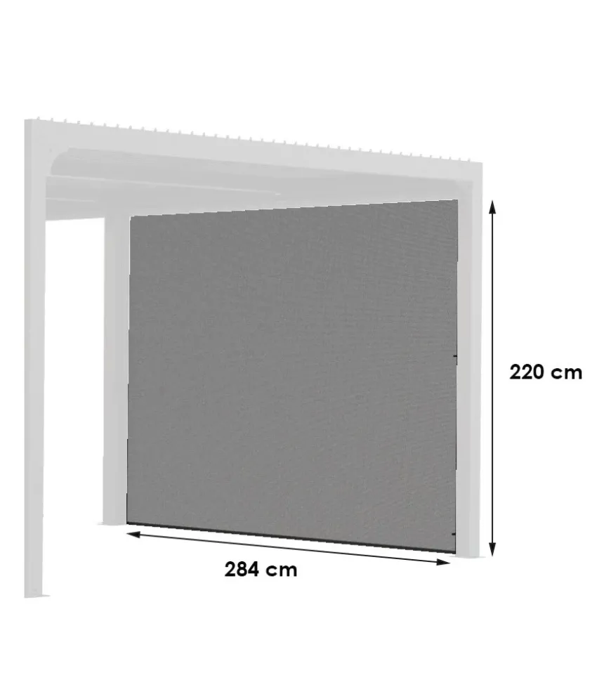 La tenda accessoria include 2 cuscinetti svolgitori laterali, 1 cilindro di supporto e 2 battagliole per discesa verticale. Abbina questa funzionale tenda accessoria con binario alla tua pergola da esterno bioclimatica!