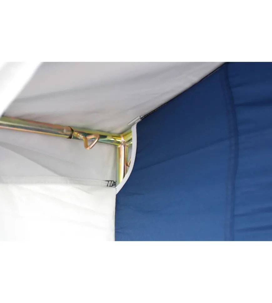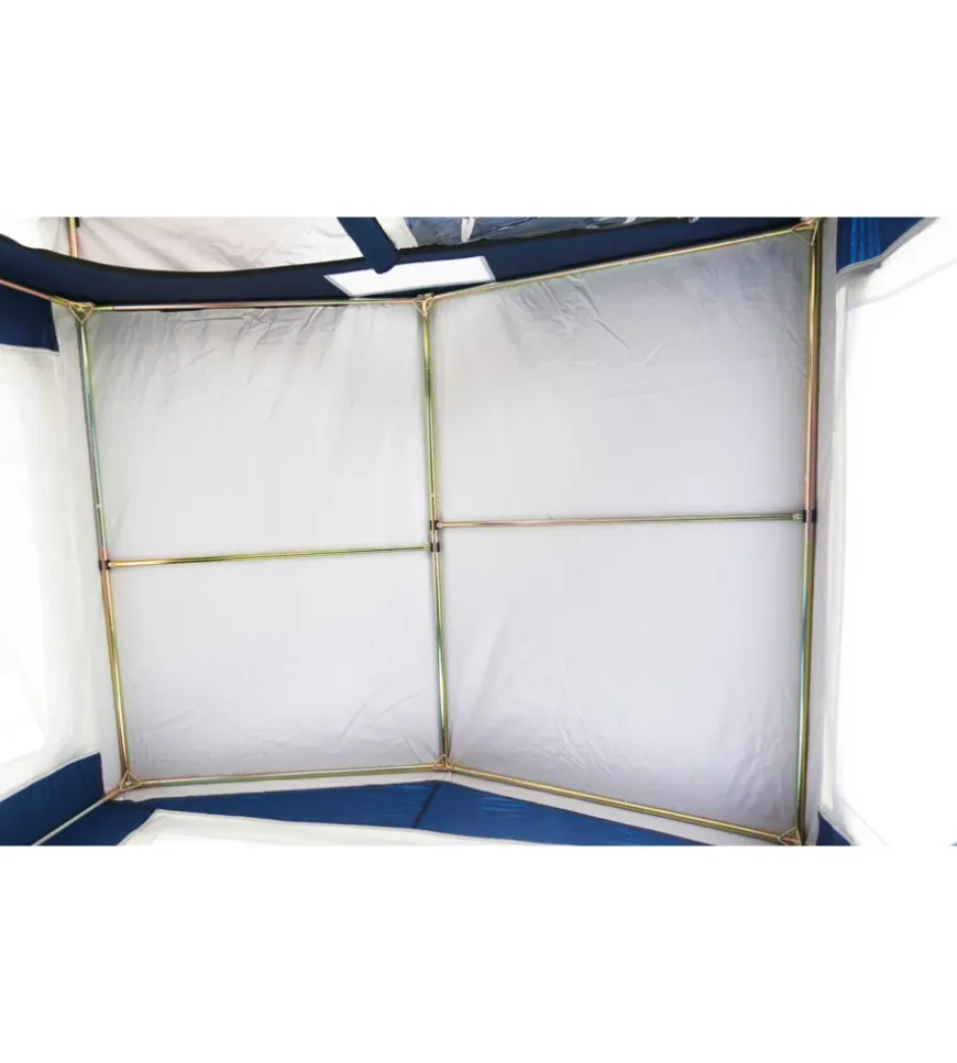Cucinotto con classico tetto a falde.Caratteristiche: Porta dentrata arrotolabile lateralmente 3 grandi finestre a zanzariera con copertura Apertura di aerazione Con balza rialzata Completo di sacca custodia e accessori di montaggio