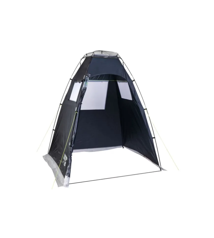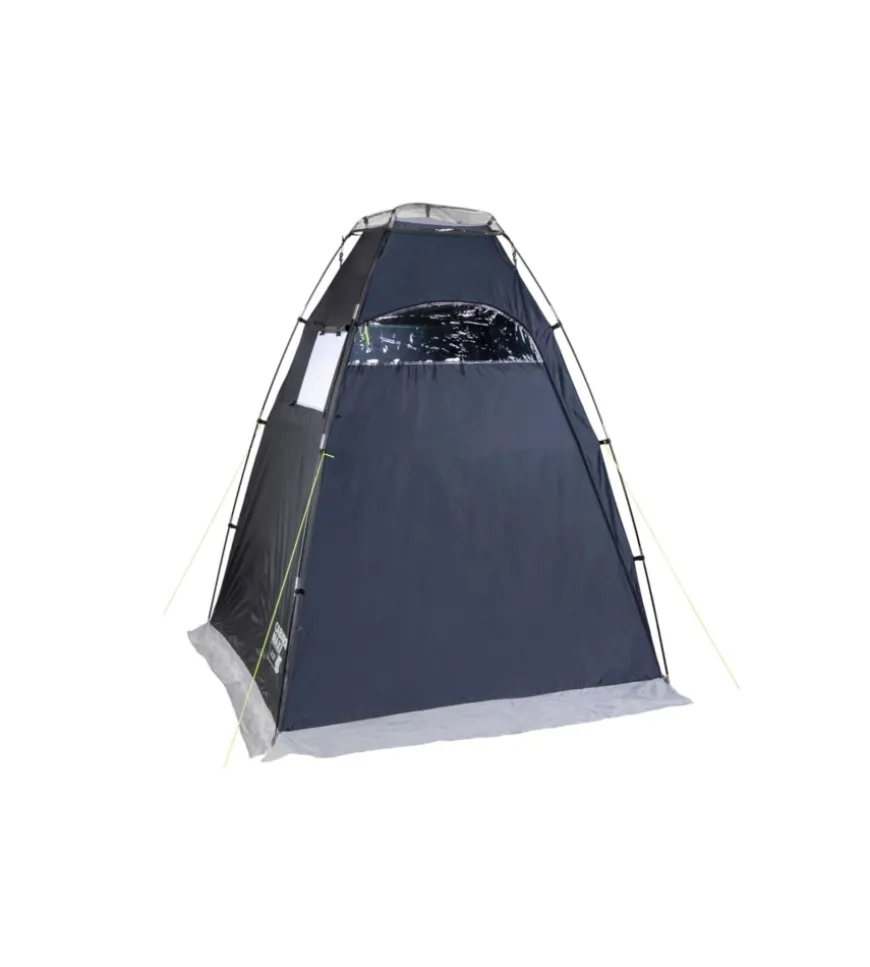 Pratica tenda cabina per campeggio e spiaggia. Ideale per la doccia e cambiarsi, ma grazie al suo sistema di aerazione anche come tenda cucina. Montaggio semplice. Porta con cerniera e balza perimetrale. Ampie dimensioni interne. Imballo compatto. Con sacca custodia ed accessori di montaggio.