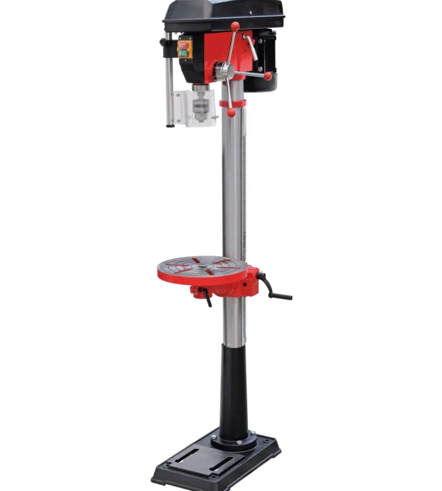 Il mandrino ha una capacità massima di 16 mm, mentre la sua corsa raggiunge gli 80 mm, consentendo un’ampia gamma di operazioni. La struttura del trapano è realizzata con un albero su cuscinetti a sfere, garantendo un funzionamento fluido e una lunga durata nel tempo. Il piano di lavoro, con un diametro di 290 mm e realizzato in ghisa, è stabile e progettato per supportare progetti di lavorazione più impegnativi.