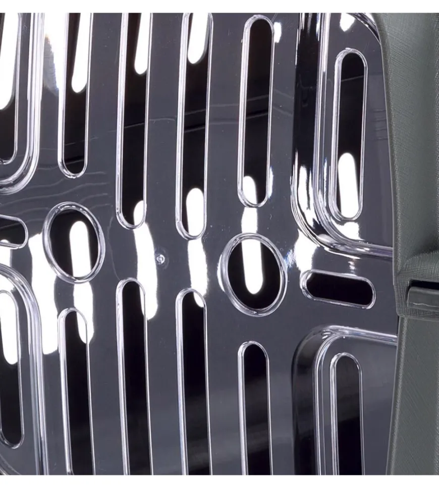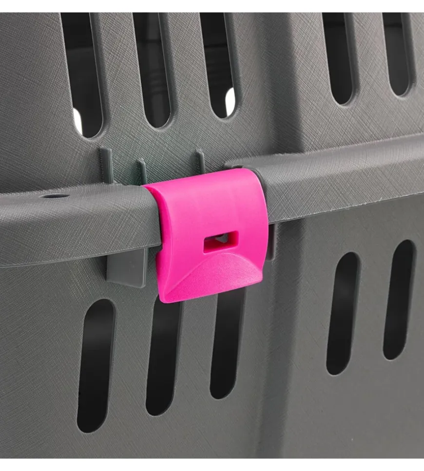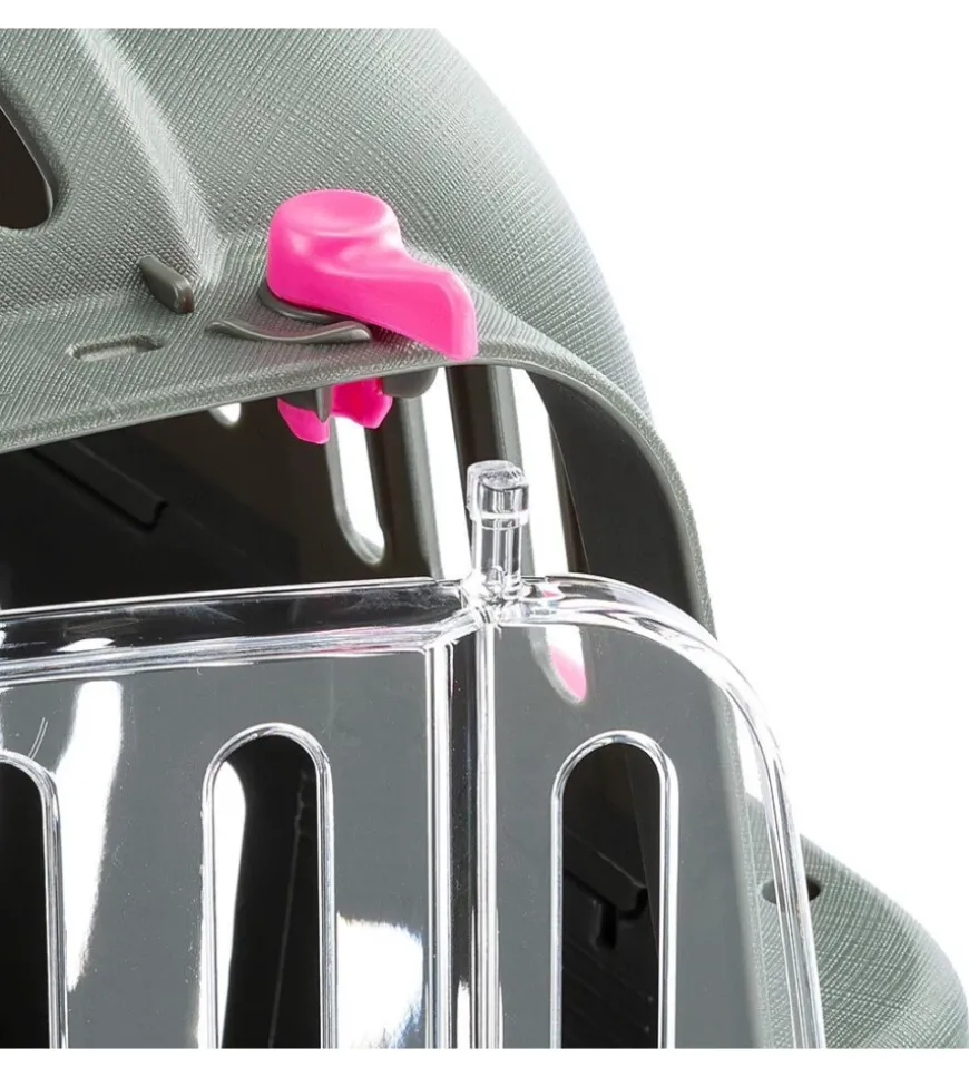 Forma arrotondata a garanzia di massimo comfort per il cane o il gatto Porta provvista di clip di chiusura di sicurezza Comoda maniglia per il trasporto Robusti agganci di chiusura di sicurezza sui lati Facilmente montabile e smontabile per la pulizia E’ possibile aggiungere una tracolla da infilare negli appositi fori presenti sulla parte superiore del trasportino Design innovativo con agganci e maniglia in colori alla moda Porta trasparente resistente agli urti, dotata di fori di aerazione, che permette la visibilità dell’animale all’interno Griglie di ventilazione per un ambiente ottimale ben areato Portata massima Jet 10: 5 Kg