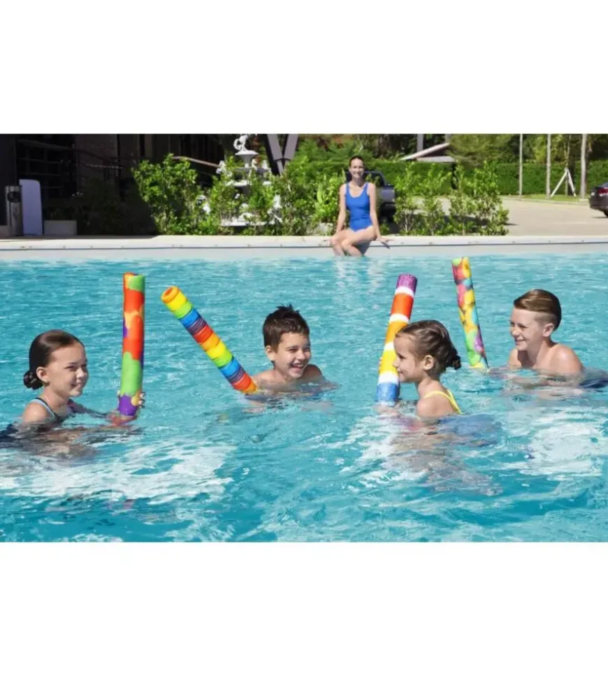 Nucleo in schiuma ricoperto da un resistente tessuto in polietilene. Con questi allegri tubi da piscina i bambini da 6 a 12 anni possono lasciarsi galleggiare mentre nuotano e giocano nella piscina.