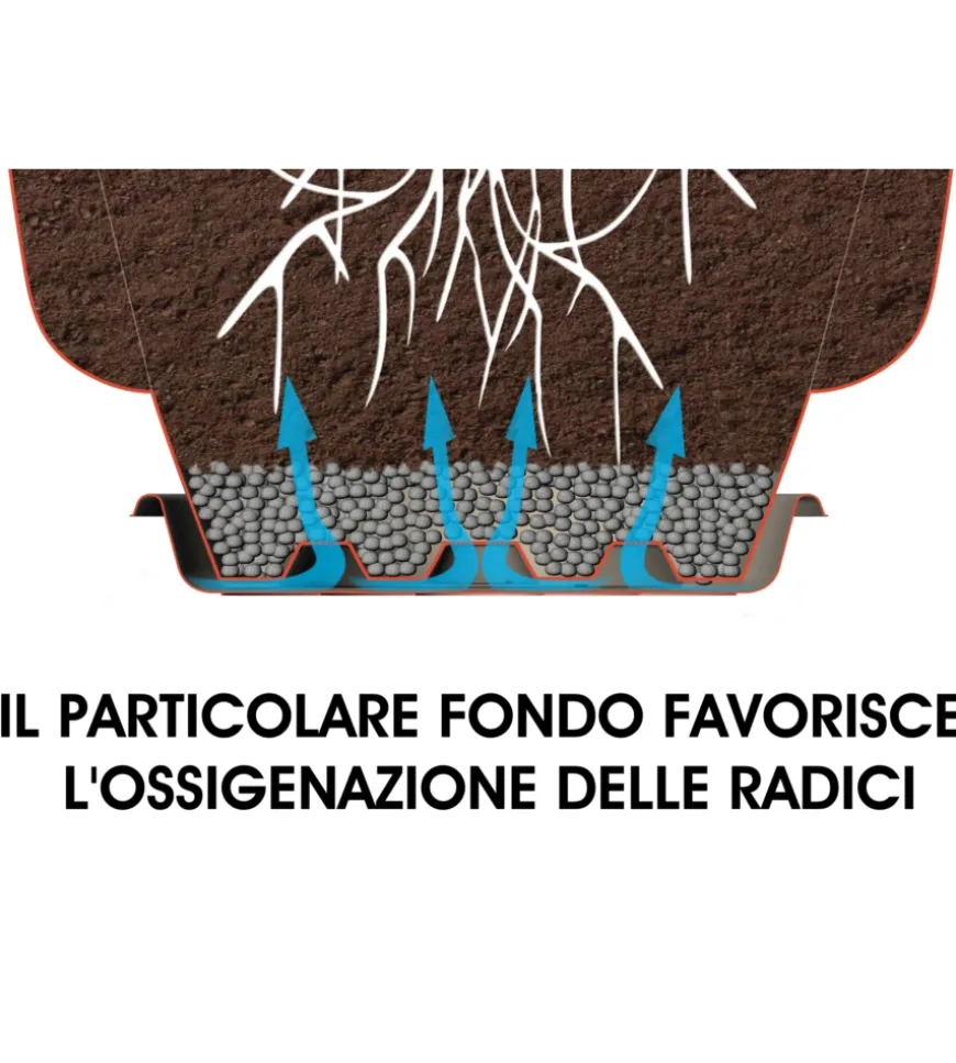 Oasi, ispirato nelle dimensioni al classico orcio toscano, robusto, elegante e molto stabile. Ha una grande bocca centrale, 6 tasche perimetrali ed il particolare fondo favorisce l’ossigenazione delle radici. Semplicissimo da assemblare ed estremamente facile il riempimento.