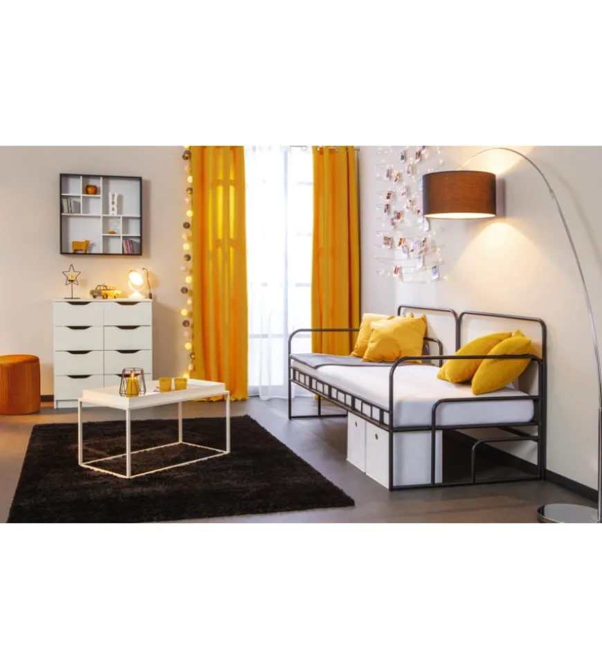 Letto singolo con 3 cassetti e letto estraibile in pino grigio 90×200 cm