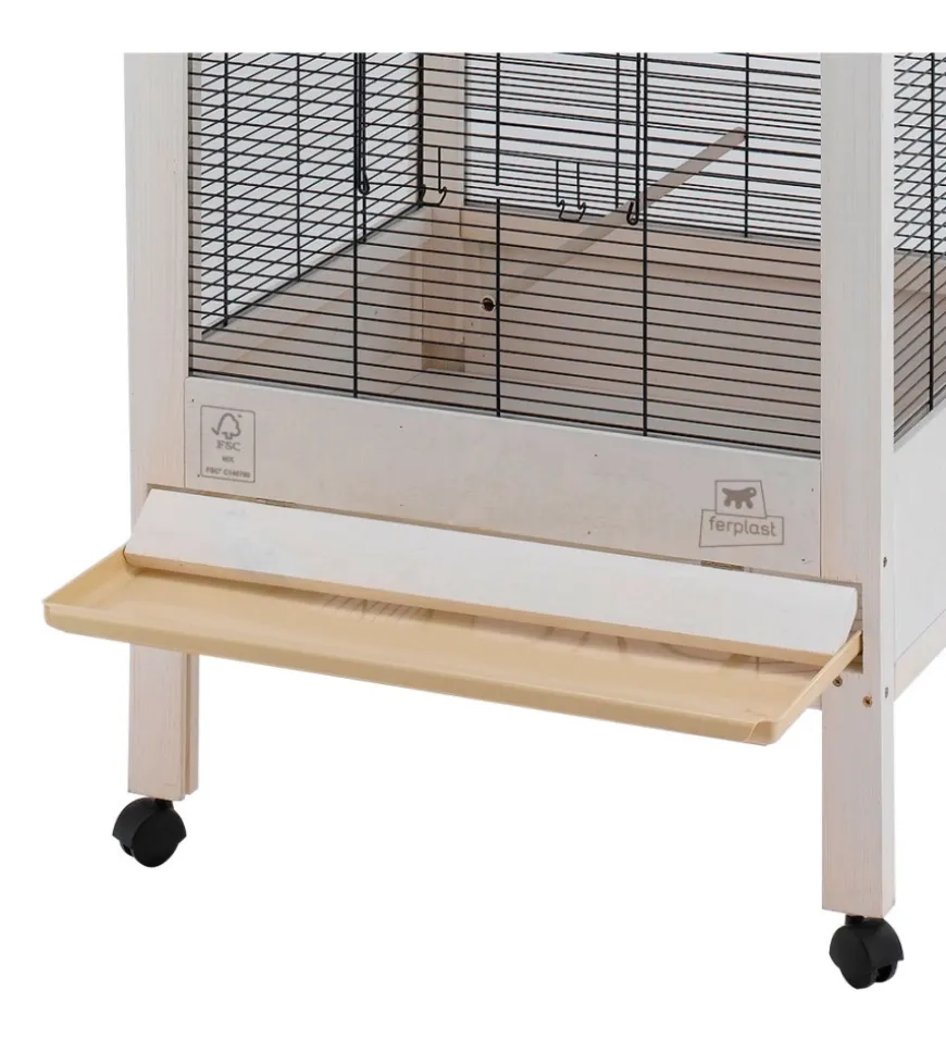 - Accessori inclusi: 1 mangiatoia girevole, 1 beverino per l’acqua e 5 posatoi