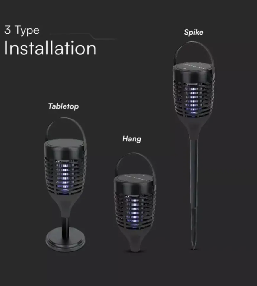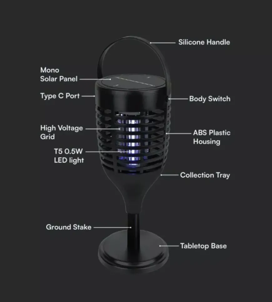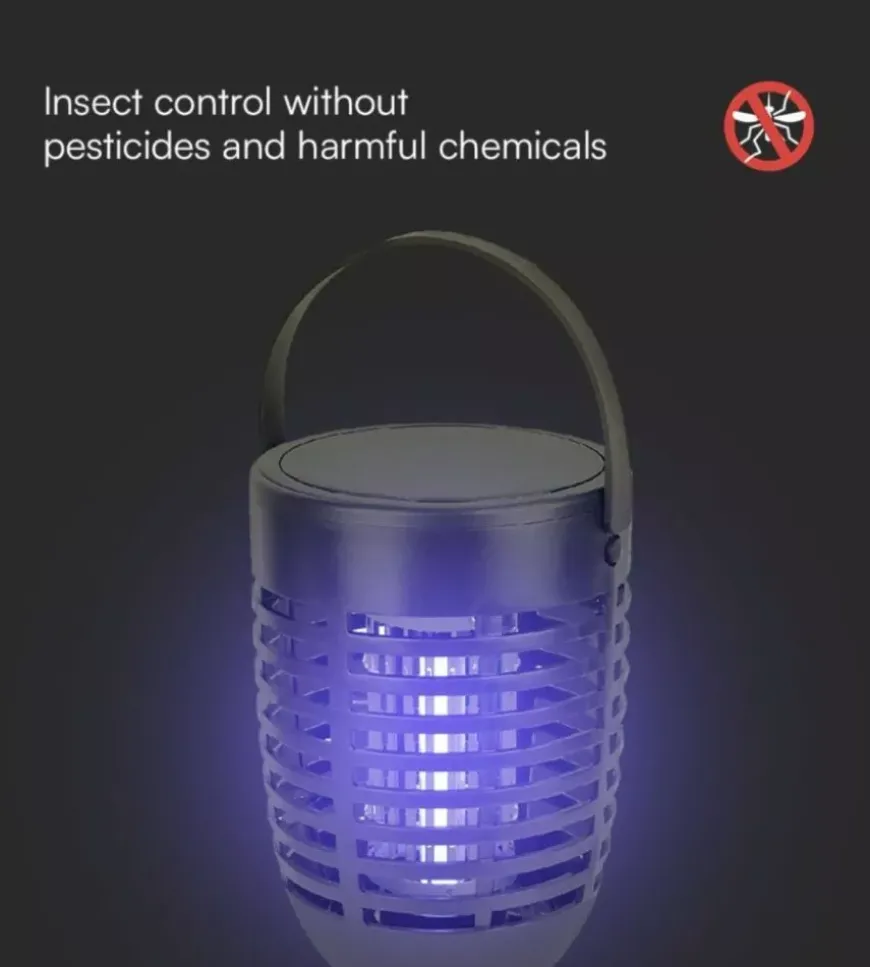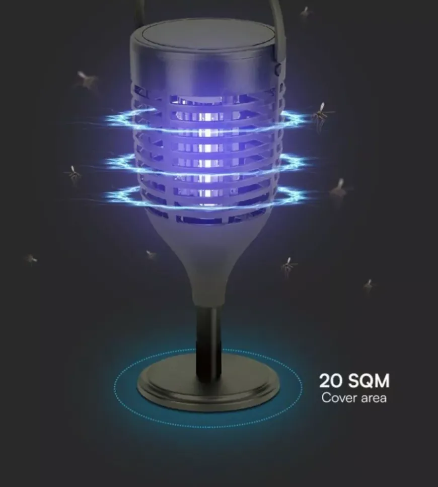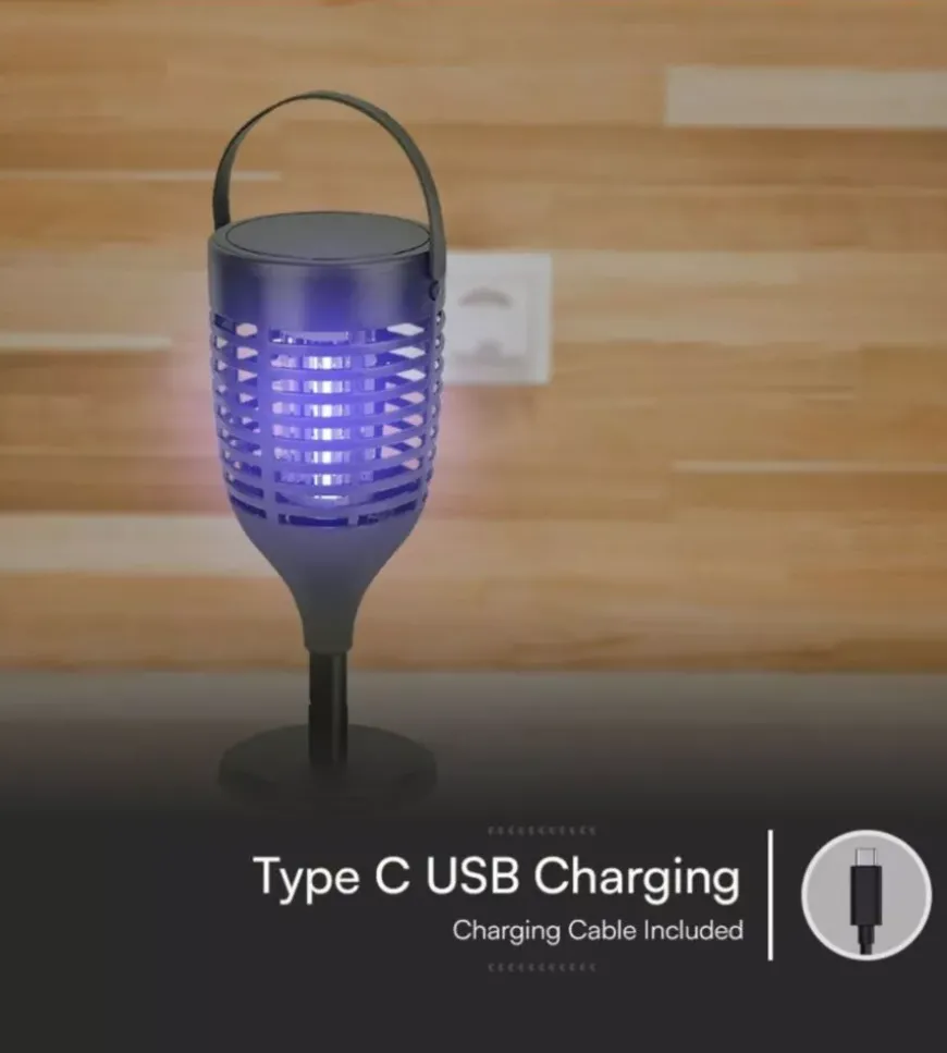 - Zanzariera elettrica ricaricabile con pannello solare e USB-C UV 2W